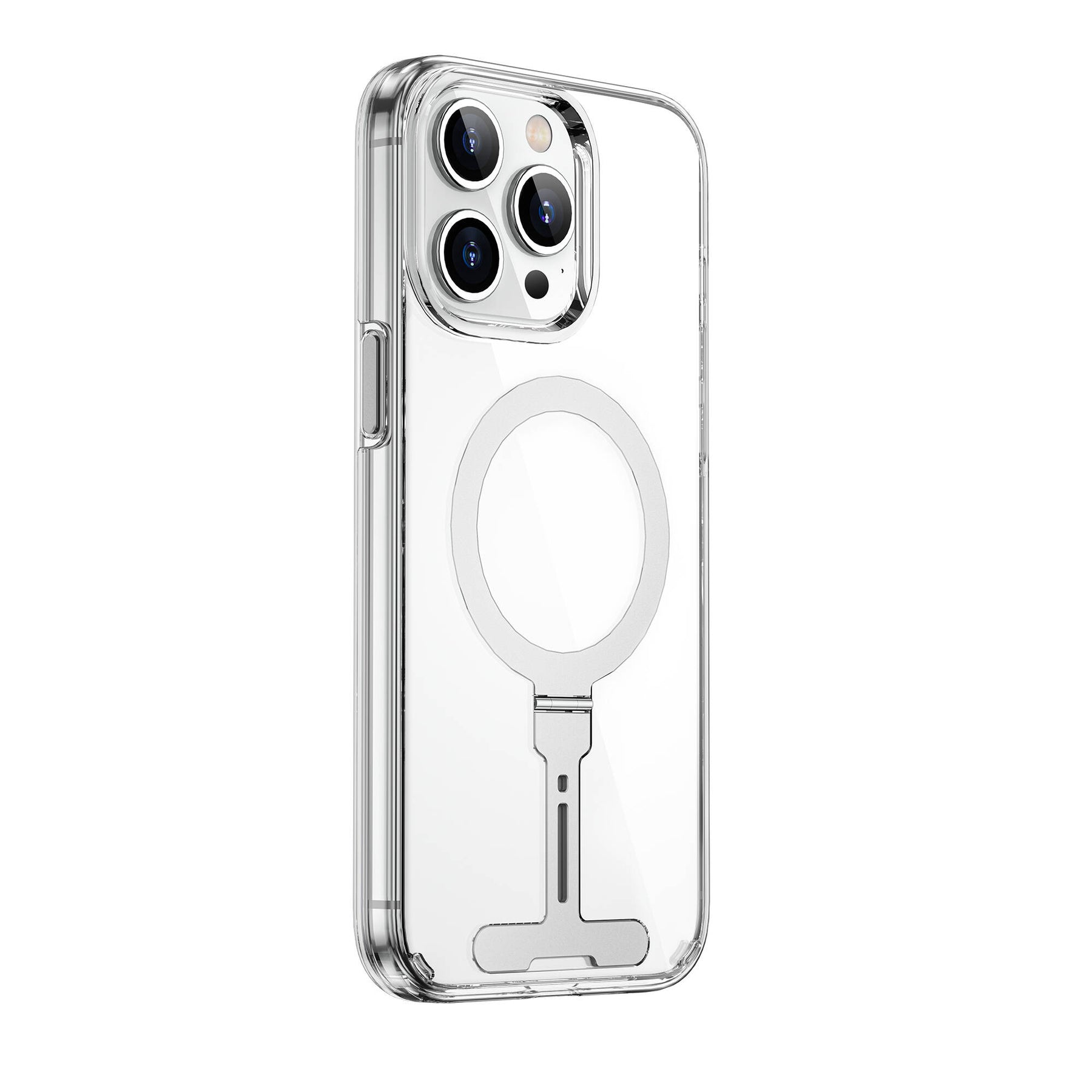 Apple iPhone 15 Pro Max Kılıf Wiwu FYY-014 Magsafe Şarj Özellikli Alüminyum Alaşım Metal Standlı Şeffaf Kapak