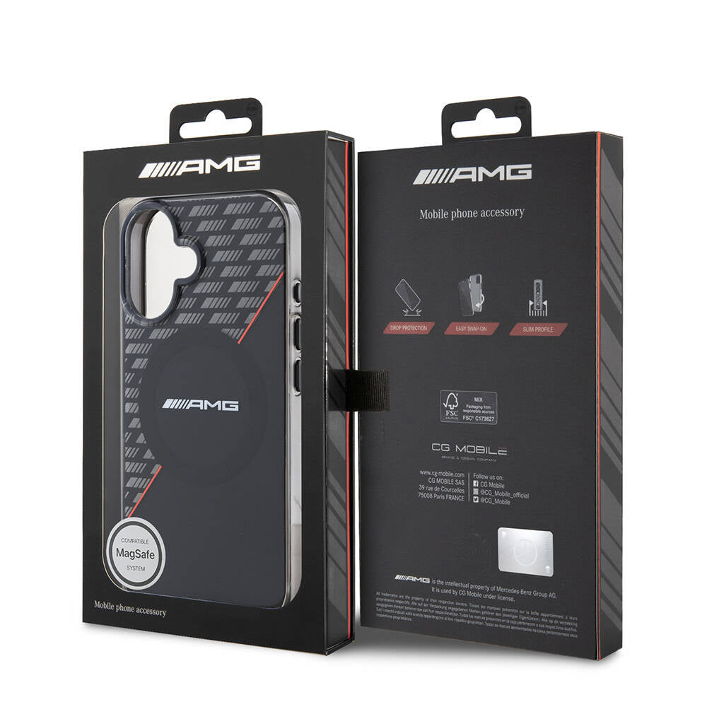 iPhone 16 Kılıf AMG Orjinal Lisanslı M-safe Şarj Özellikli Çift Katmanlı Kırmızı Çapraz Çizgili Kılıf