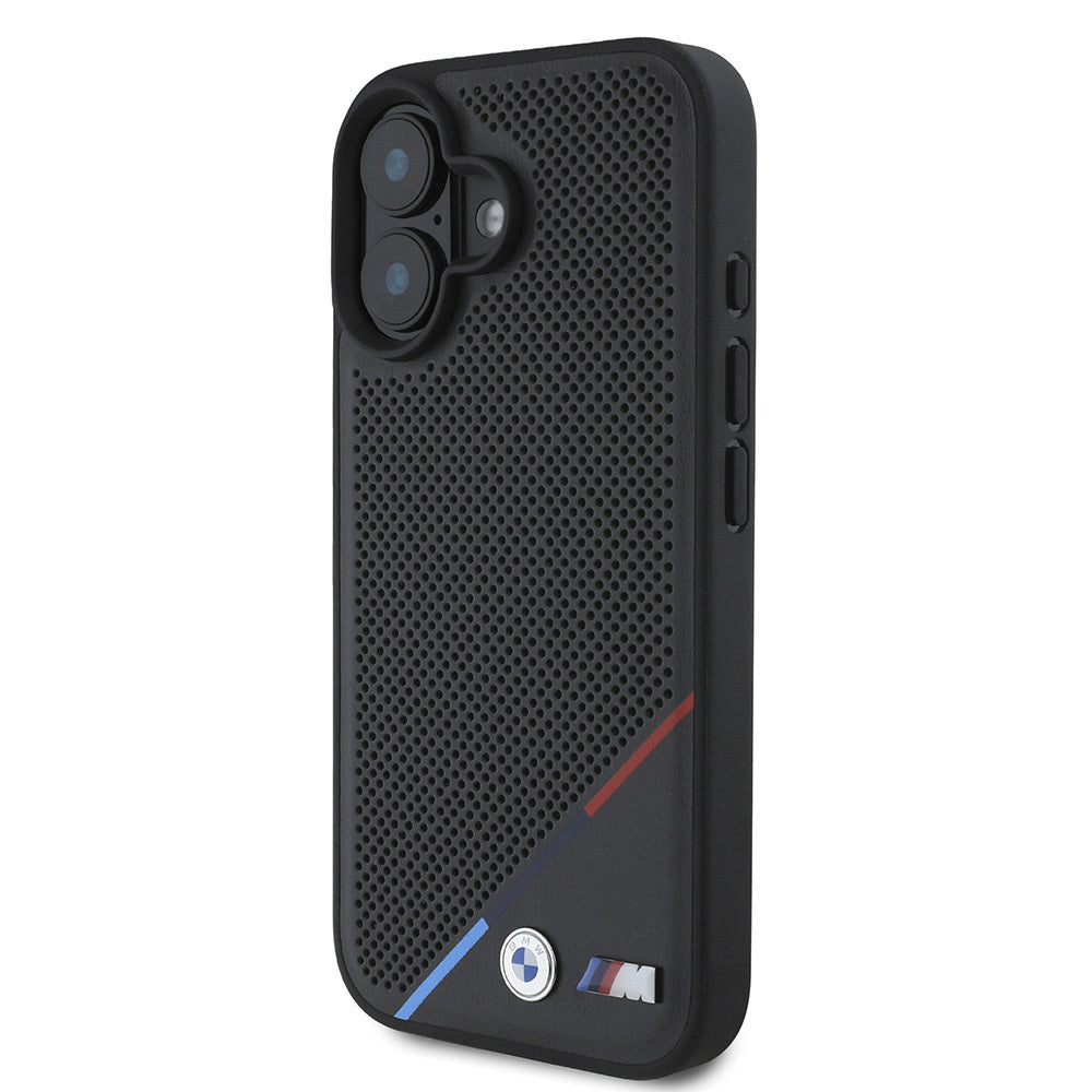 iPhone 16 Kılıf BMW Orjinal Lisanslı Magsafe Şarj Özellikli M Logolu Üç Çizgili Delikli Deri Kapak