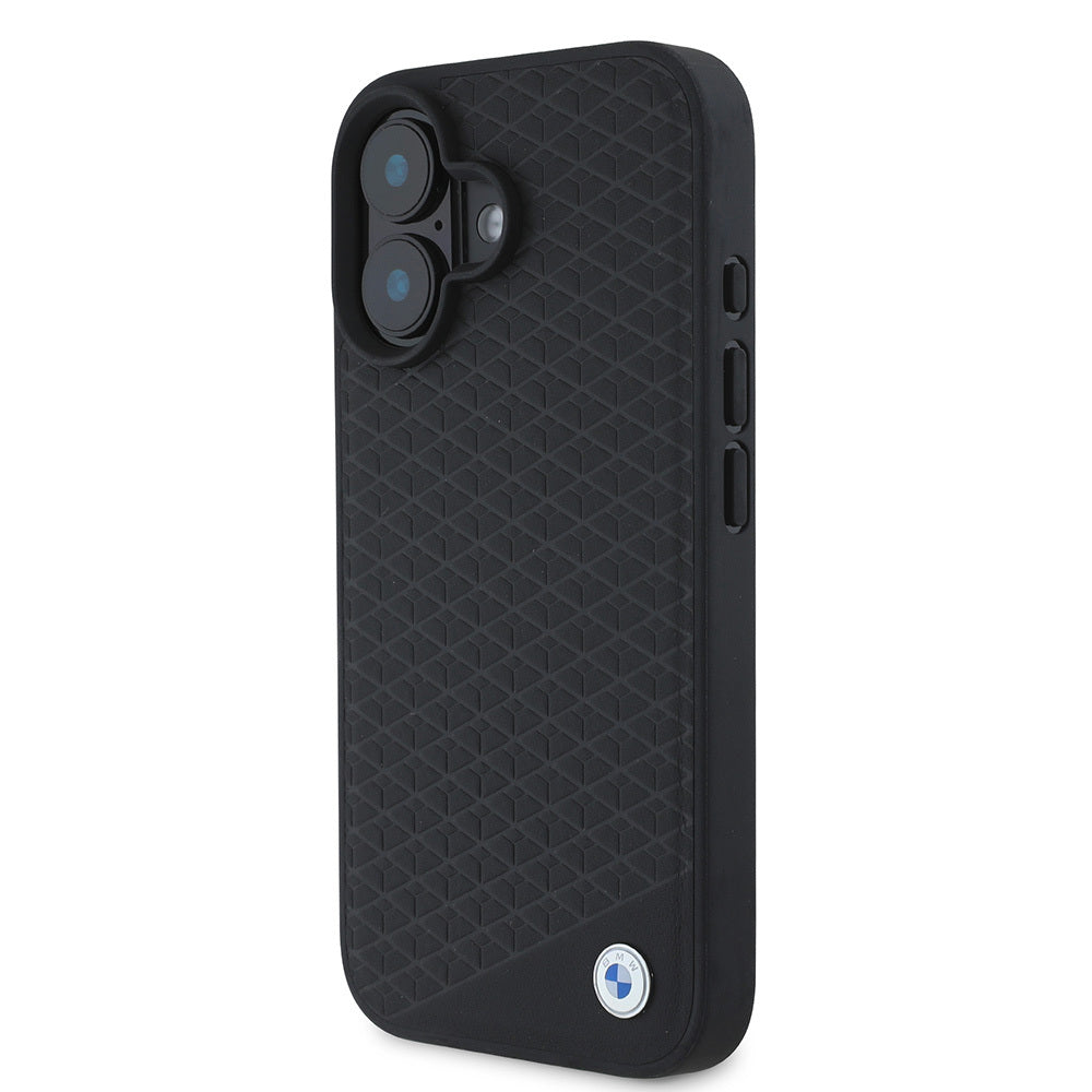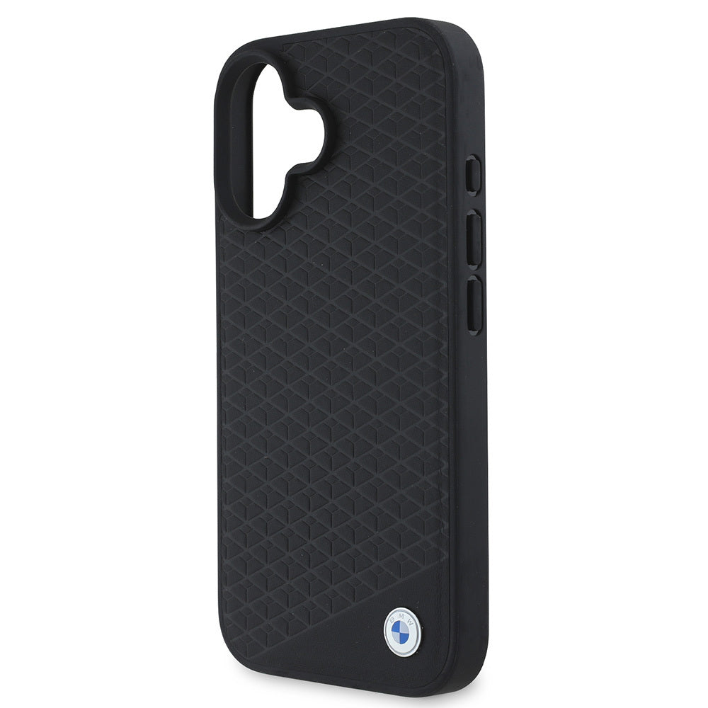iPhone 16 Kılıf BMW Orjinal Lisanslı Magsafe Şarj Özellikli Metal Logolu Dokulu Diamond Deri Kapak