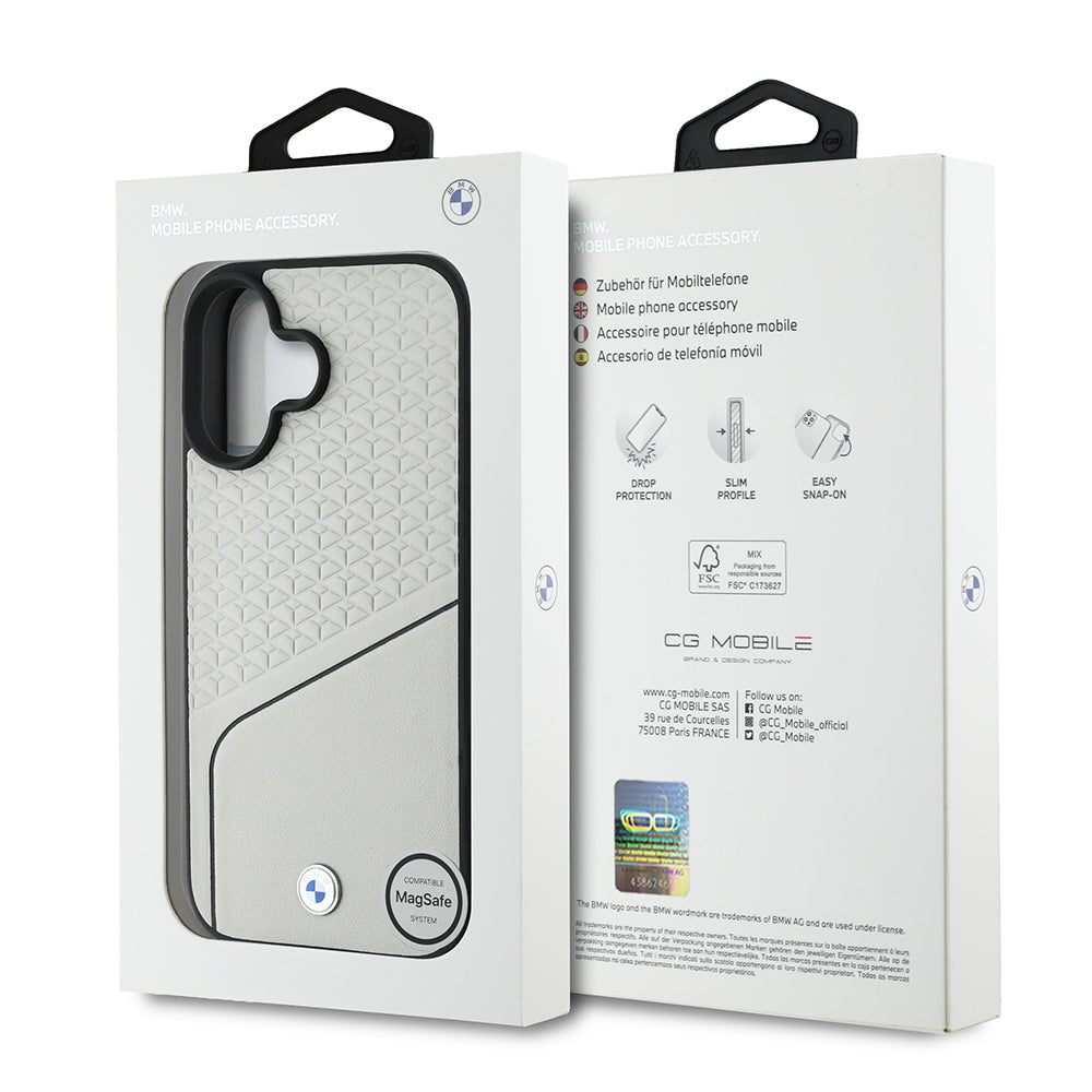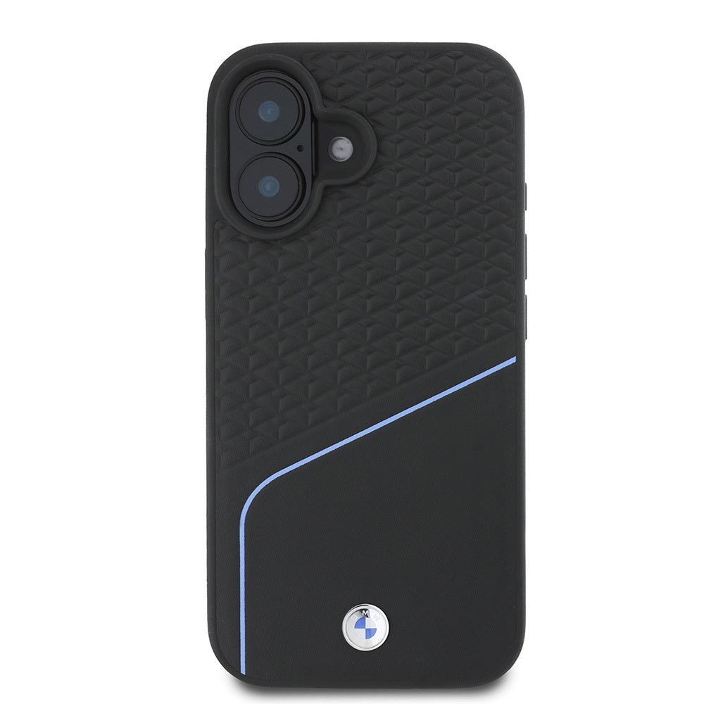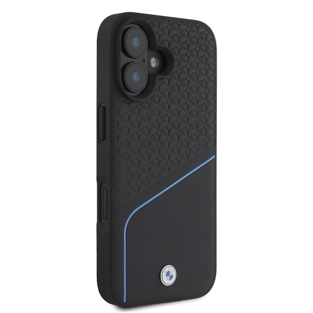 iPhone 16 Kılıf BMW Orjinal Lisanslı Magsafe Şarj Özellikli Metal Logolu Dokulu ve Çizgili Deri Kapak