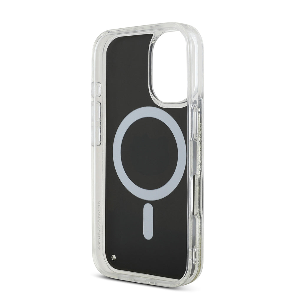 iPhone 16 Kılıf Hello Kitty Orjinal Lisanslı M-safe Şarj Özellikli IML Baskı Kitty Head Logolu Sıvılı Simli Altın Ateşi Kılıf