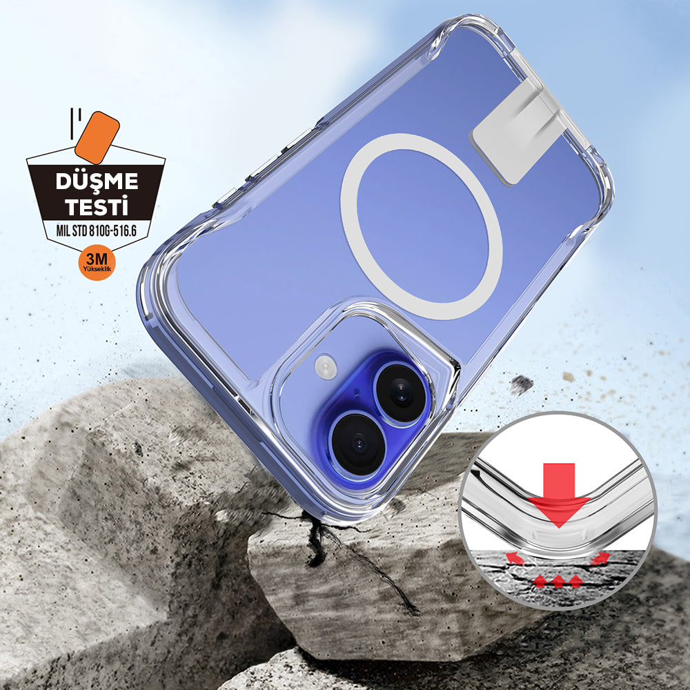iPhone 16 Kılıf M-safe Şarj Özellikli Zore T-Max Standlı Kılıf