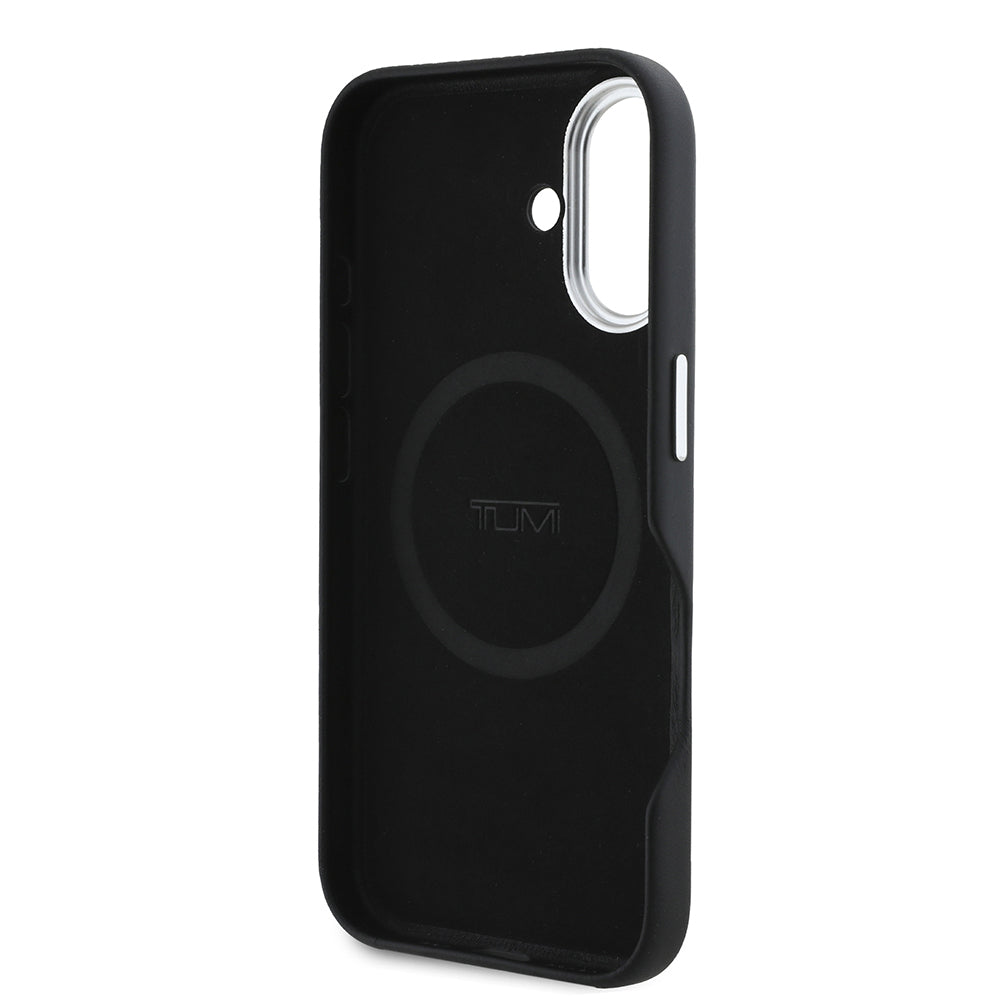 iPhone 16 Kılıf TUMI Orjinal Lisanslı Magsafe Şarj Özellikli Metal Yazı Logolu PU Deri Kapak