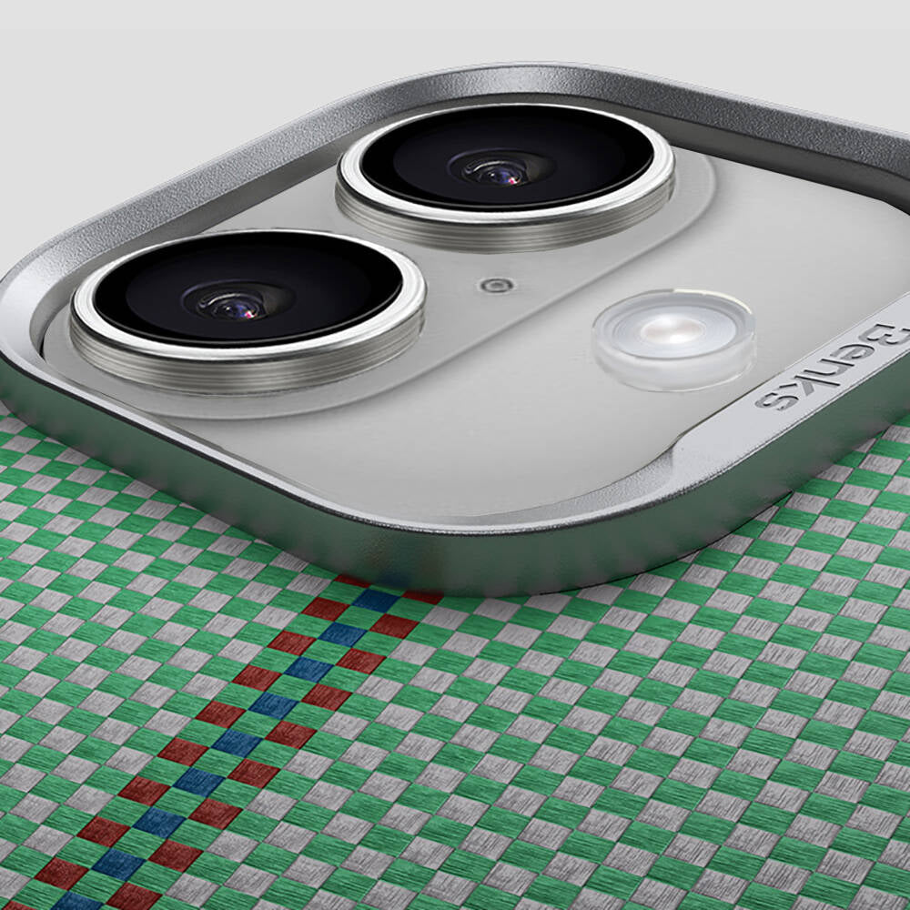 iPhone 16 Plus Kılıf M-safe Şarj Özellikli Karbon Fiber Tasarımlı Benks Passion Green ArmorAir Kevlar Kılıf