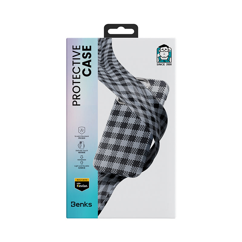 Benks ArmorVichy Kevlar Kapak, ikonik Fransız ekose deseninden ilham alınarak tasarlanmış olup, sofistike ve modern bir görünüm sunar. Yüzen dokuma tekniğiyle işlenen Kevlar® fiber yüzeyi sayesinde hem göz alıcı bir derinlik hem de elde hissedilen üst düzey bir zarafet sağlar. Minimalist çizgileri ve kabartmalı dokusu ile sadece şıklık değil, estetik bir deneyim de sunar. Günlük kullanımda ya da özel anlarda tarzınızı en zarif şekilde yansıtır.