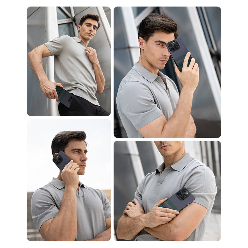 iPhone 16 Pro Kılıf M-safe Şarj Özellikli Karbon Fiber Tasarımlı Benks Aurora ArmorPro Kevlar Kılıf