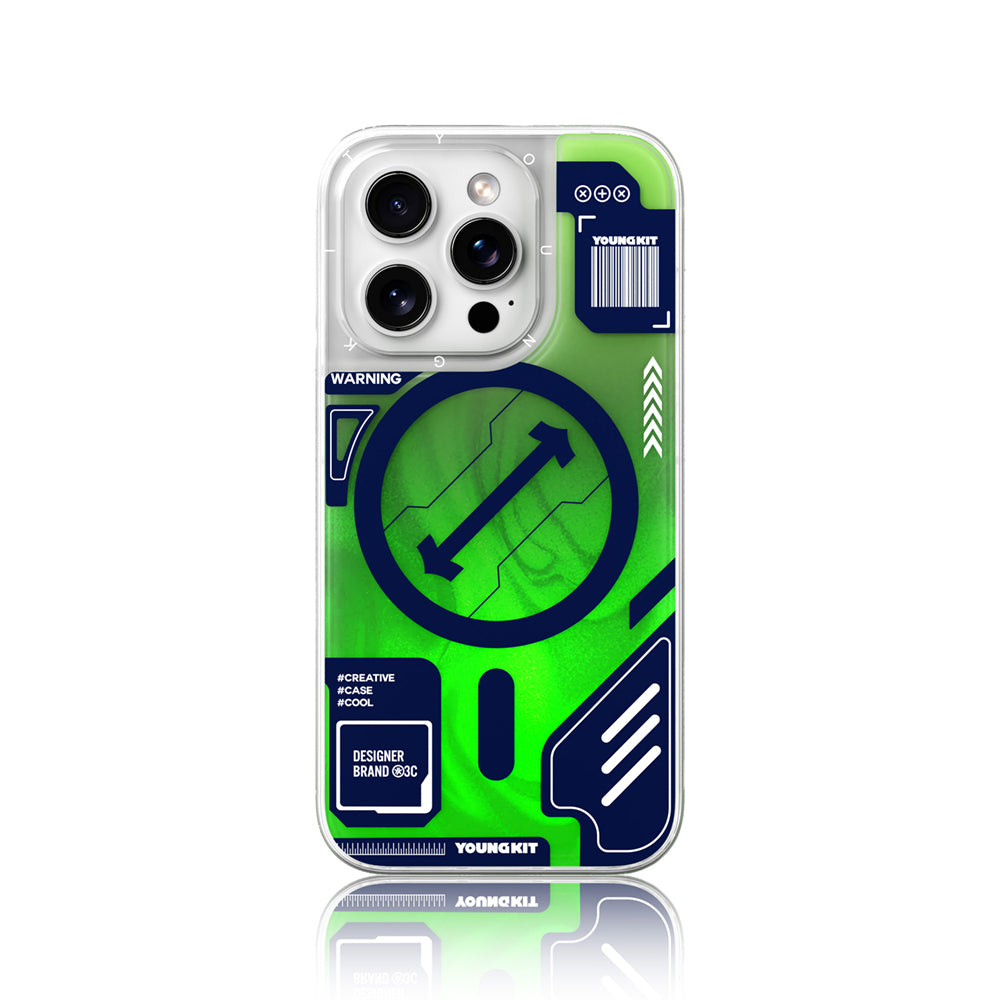 Glow-in-the-dark teknolojisi ve sıvı kum detaylarıyla futuristik bir tarz sunan bu kılıf, Cyberpunk esintilerini telefonunuza taşıyor. Karanlıkta parlayan ve göz alıcı bir görsel etki yaratan tasarımı sayesinde her ortamda dikkatleri üzerinize çeker. Üstün koruma sağlayan bu tasarım, şıklık ve dayanıklılığı bir araya getirir. Aynı zamanda dört köşesinde bulunan buzlu airbag anti-düşme çerçevesi ile darbelerden korur. Kamera lensleriniz için yükseltilmiş kenar yapısı ve sararmaya karşı dirençli yapısıyla her detayı düşünülerek tasarlanmıştır.