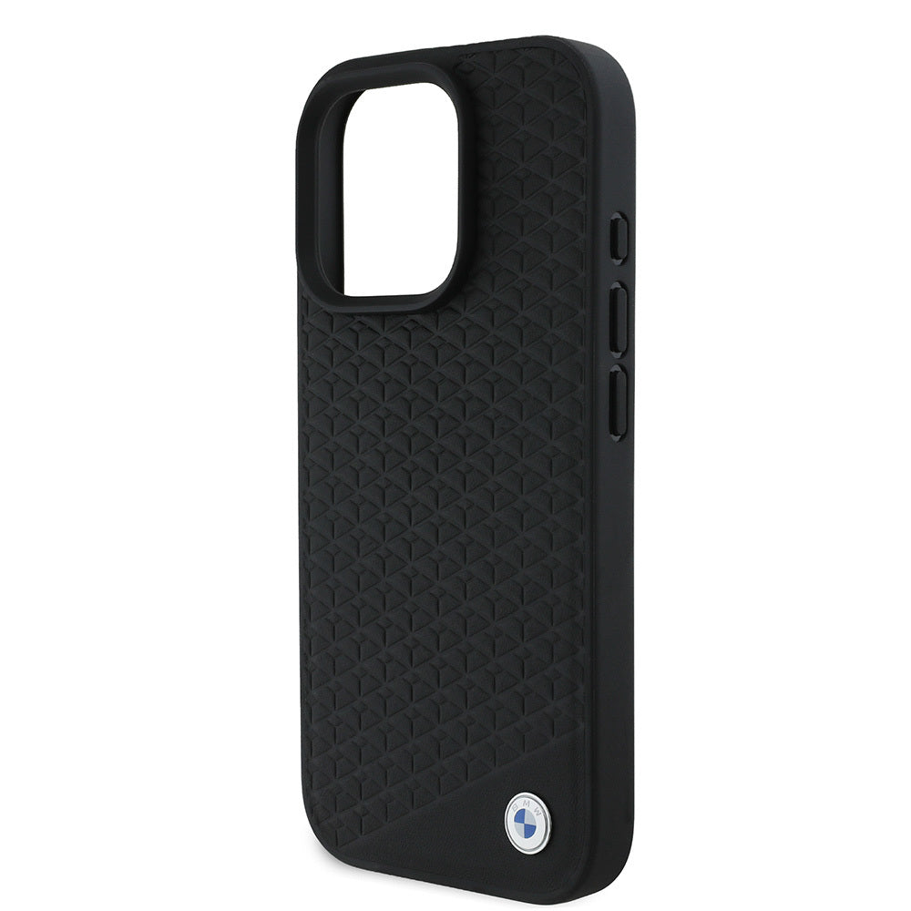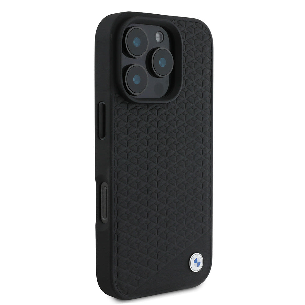 iPhone 16 Pro Max Kılıf BMW Orjinal Lisanslı M-safe Şarj Özellikli Metal Logolu Dokulu Diamond Deri Kılıf