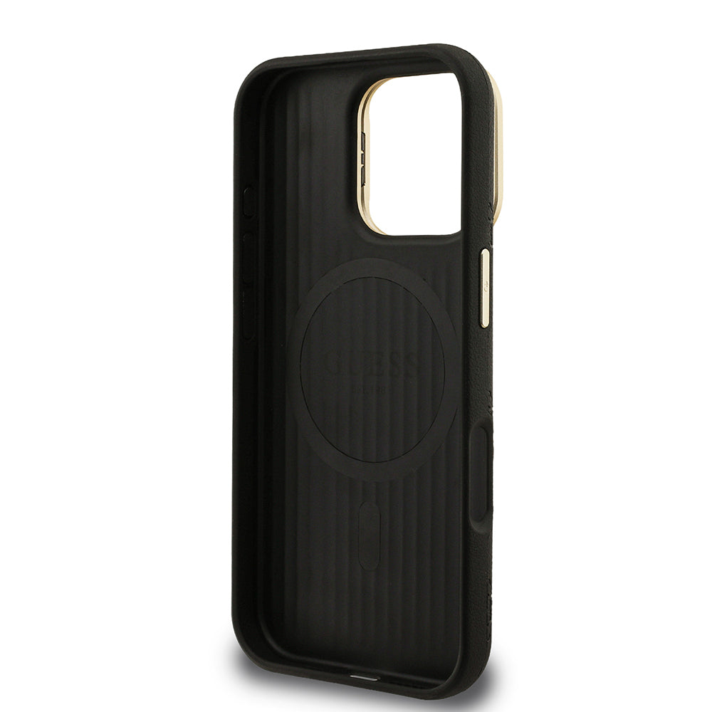 iPhone 16 Pro Max Kılıf Guess Orjinal Lisanslı M-safe Şarj Özellikli Sıcak Baskılı Yazı Logolu Kamera Standlı PU Deri Peony Kapak