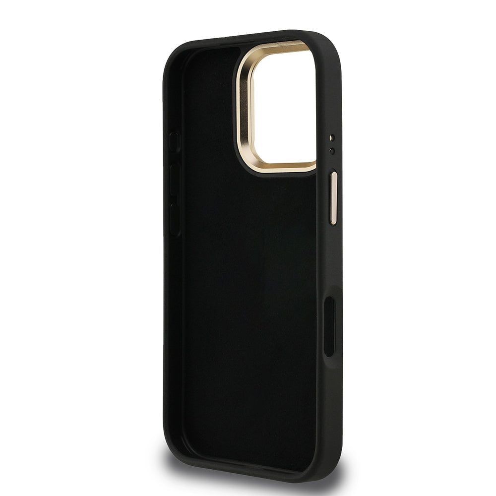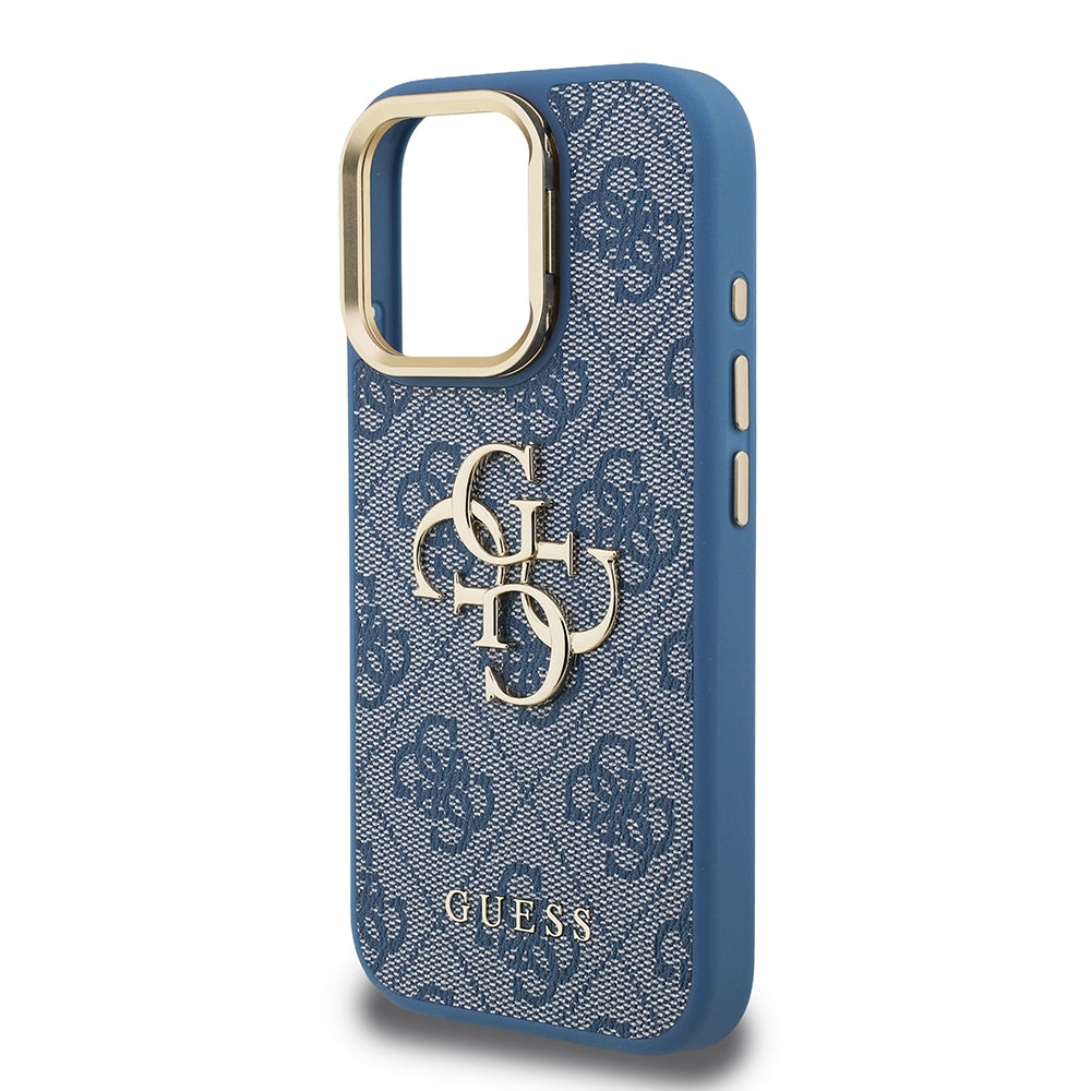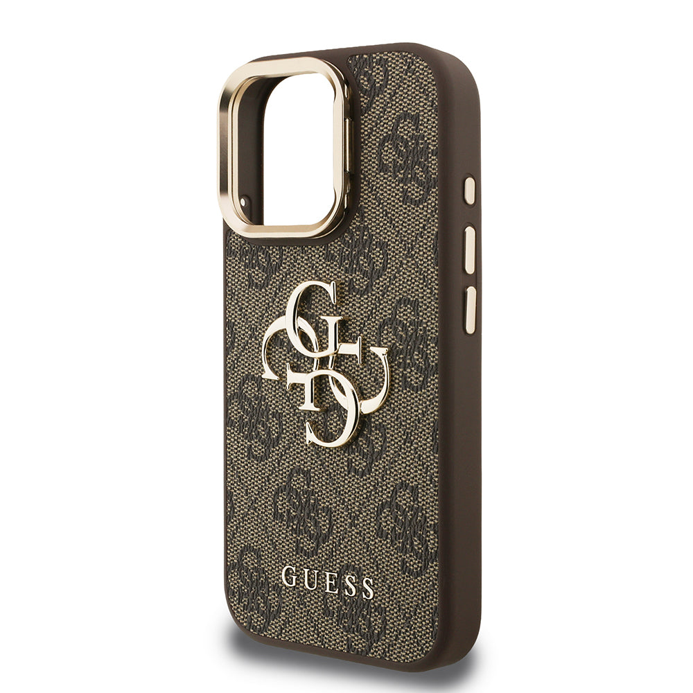 iPhone 16 Pro Max Kılıf Guess Orjinal Lisanslı PU Deri 4G Desenli Metal Büyük 4G ve Yazı Logolu Kamera Standlı Kapak
