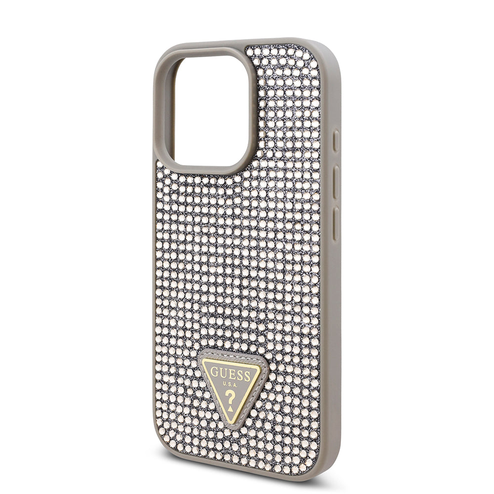 iPhone 16 Pro Max Kılıf Guess Orjinal Lisanslı Taşlı Arka Yüzey Üçgen Logolu Kılıf