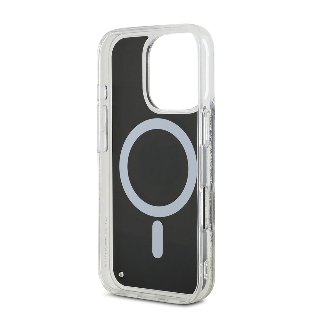 iPhone 16 Pro Max Kılıf Hello Kitty Orjinal Lisanslı M-safe Şarj Özellikli IML Baskı Kitty Head Logolu Sıvılı Simli Altın Ateşi Kılıf