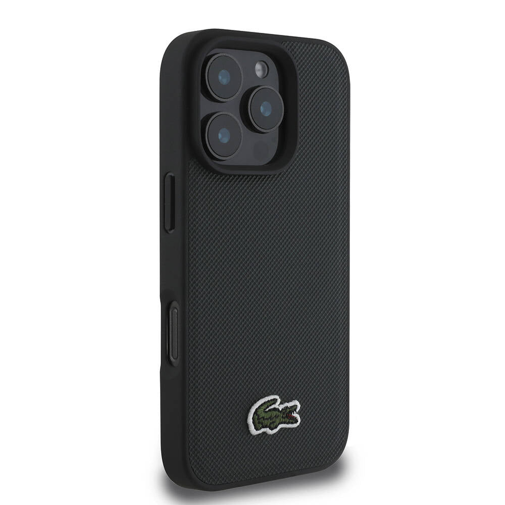 iPhone 16 Pro Max Kılıf Lacoste Orjinal Lisanslı PU Pike Desenli Arka Yüzey İkonik Timsah Dokuma Logolu Kapak