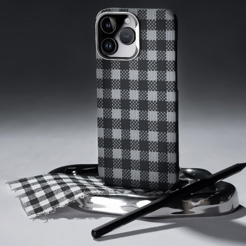 iPhone 16 Pro Max Kılıf M-safe Şarj Özellikli Ekose Tasarımlı Benks ArmorVichy Kevlar Kılıf