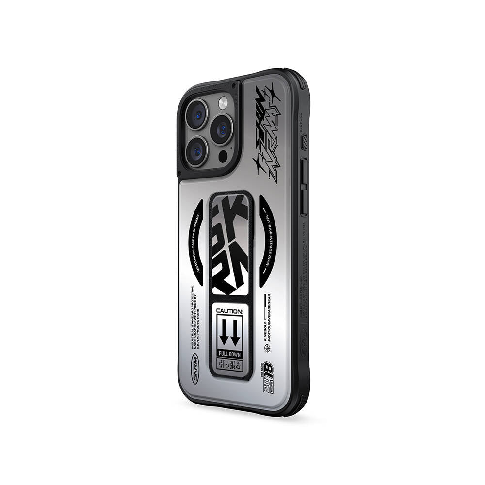 iPhone 16 Pro Max Magsafe Şarj Özellikli Holografik Tasarımlı Standlı Deri Görünümlü Skinarma Kira Kobai Kapak