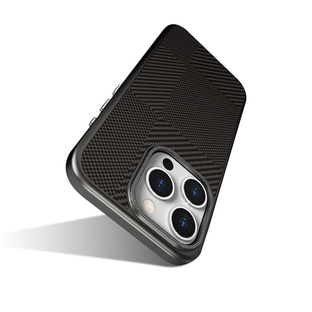 iPhone 16 Pro Max Kılıf Magsafe Şarj Özellikli Karbon Fiber Desenli Mutural Montage Kapak