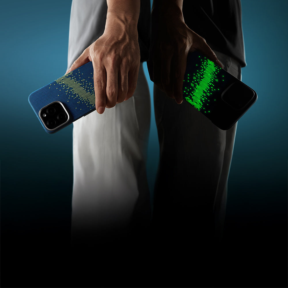 Lumintex teknolojisiyle donatılmış bu kılıf, karanlıkta parlayan fosforlu detayları sayesinde eşsiz bir görünüm sunar. İnce dokuma yapısıyla aramid fiber, hem estetik hem de dayanıklılığı bir araya getirir. Göz alıcı tasarımıyla cihazınızı tarzınızın bir parçası haline getirir.
