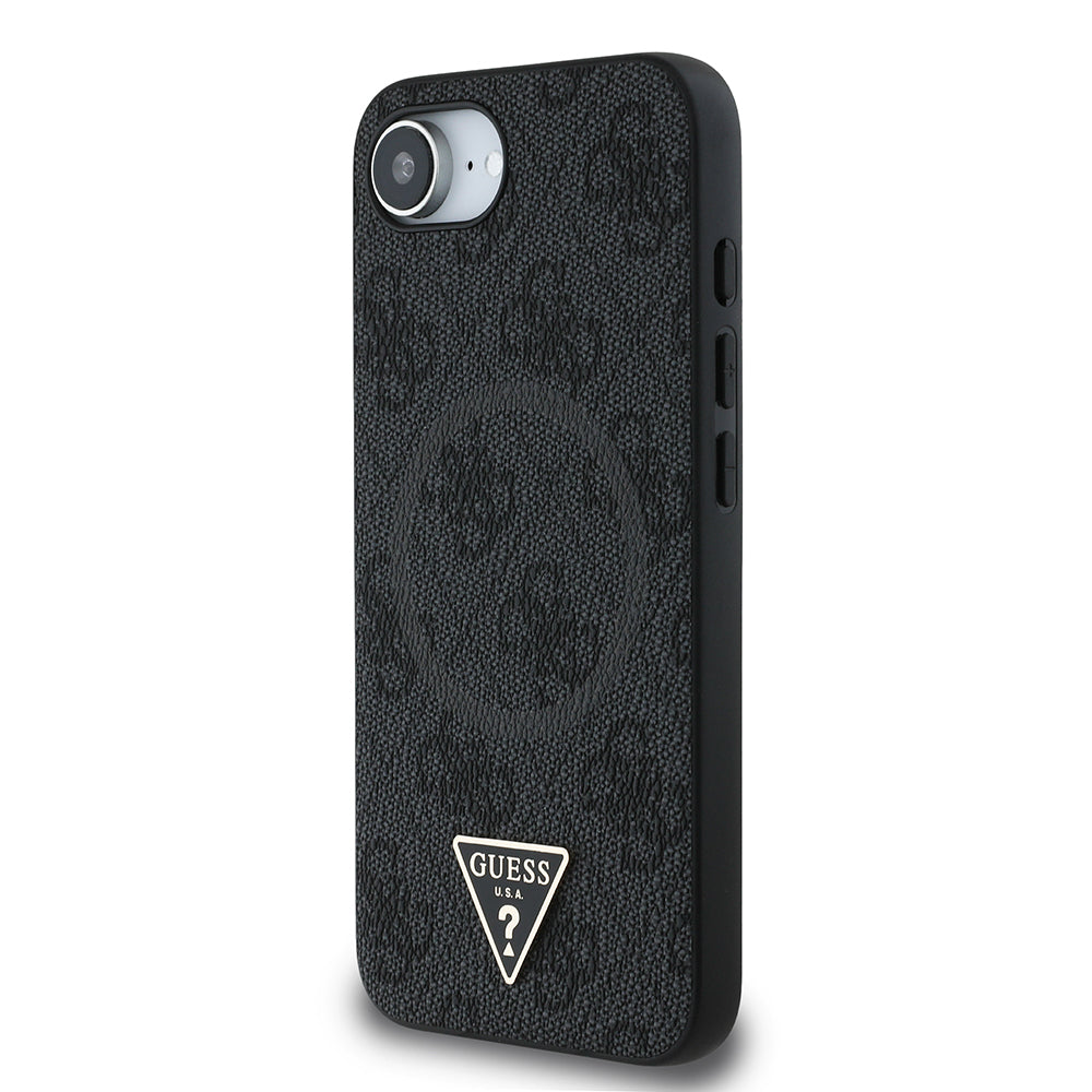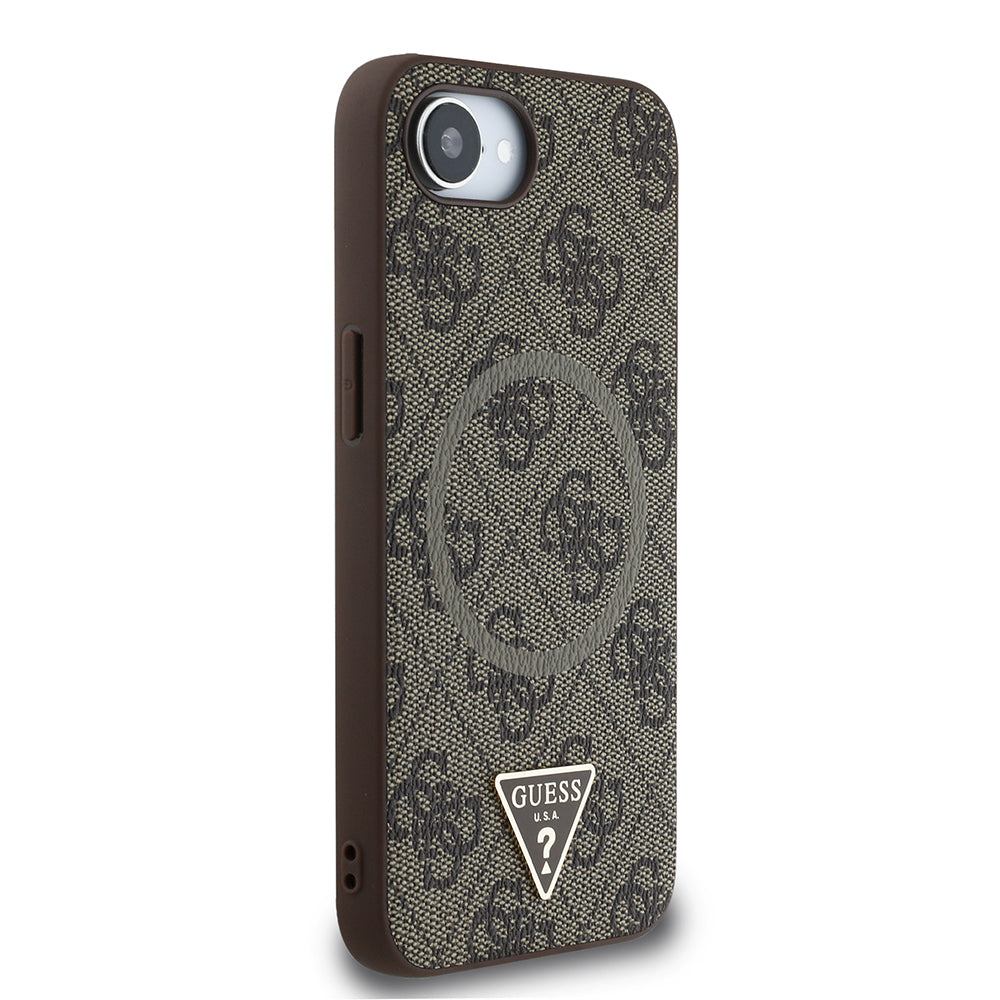 iPhone 16E Kılıf Guess Orjinal Lisanslı Magsafe Şarj Özellikli PU Üçgen Logo 4G Desenli Kapak
