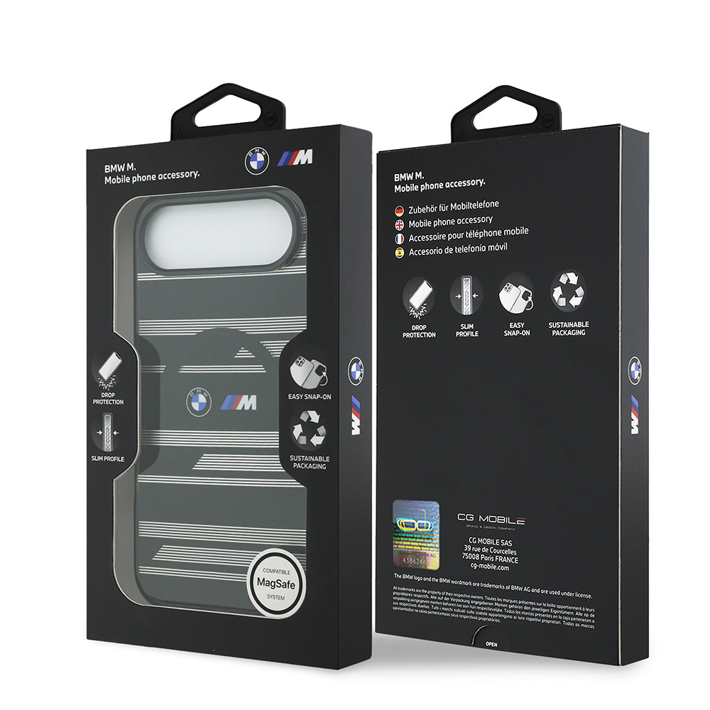 iPhone 17 Air Kılıf BMW Orjinal Lisanslı M-safe Şarj Özellikli Metal Kamera Butonlu Yatay Şeritli M Dizayn Kılıf
