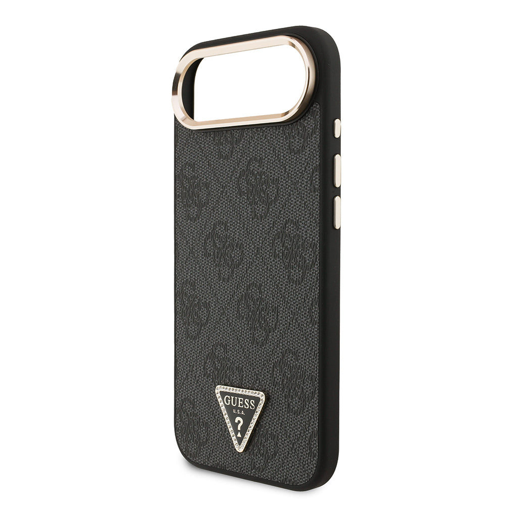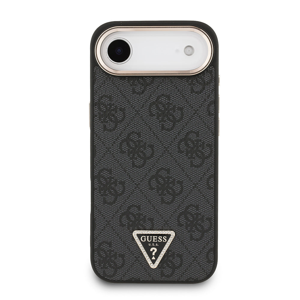 iPhone 17 Air Kılıf Guess Orjinal Lisanslı M-safe Şarj Özellikli Gold Metal Kamera Çerçeveli Taşlı Üçgen Logo 4G Desenli Kapak