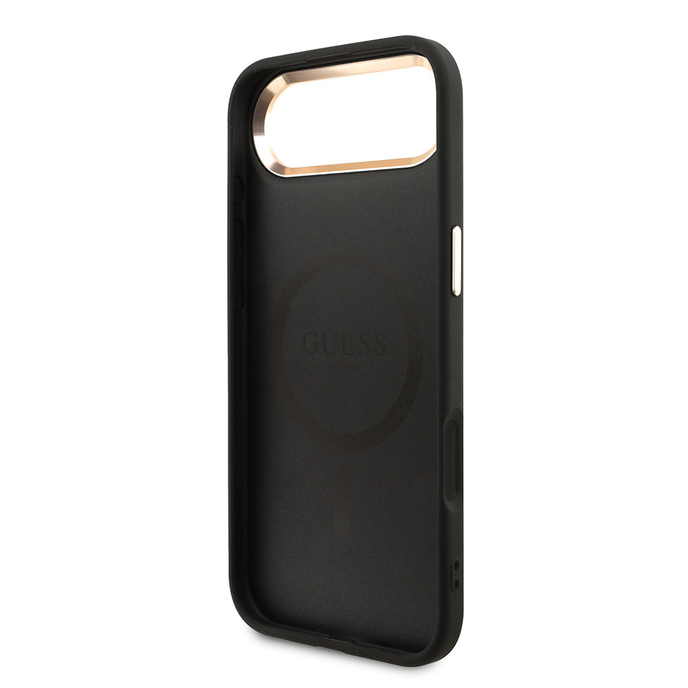 iPhone 17 Air Kılıf Guess Orjinal Lisanslı M-safe Şarj Özellikli Gold Metal Kamera Çerçeveli Taşlı Üçgen Logo 4G Desenli Kılıf