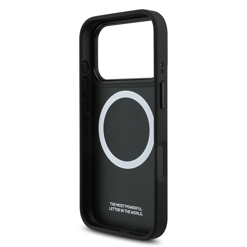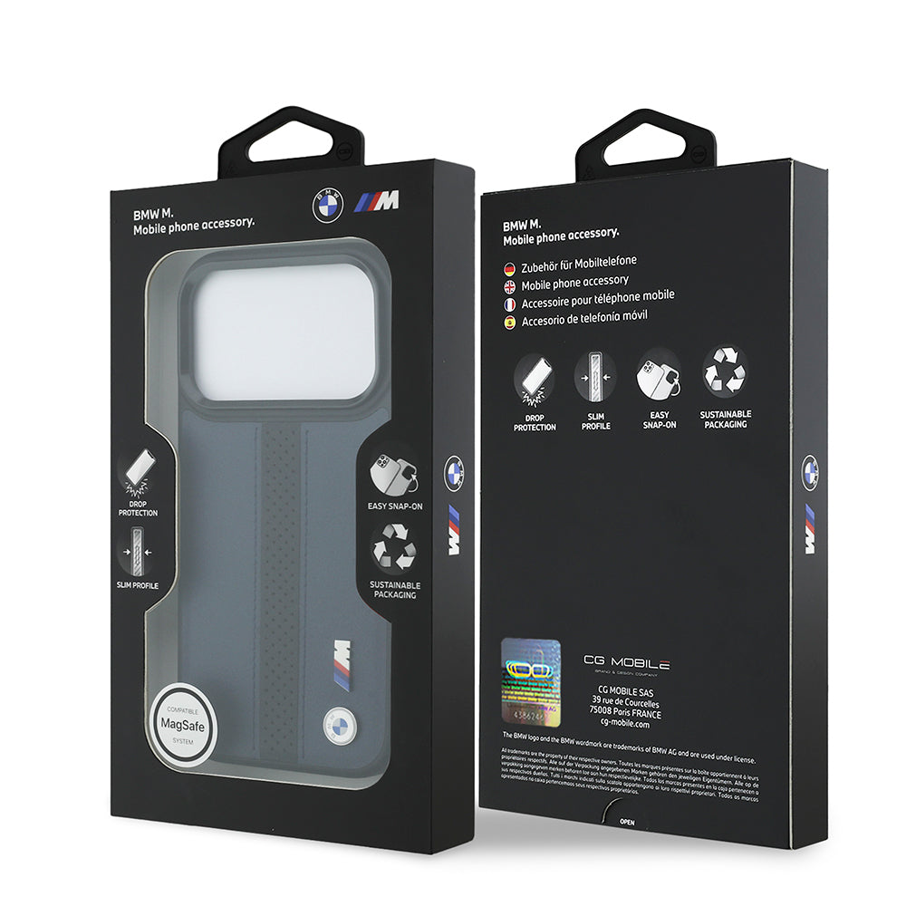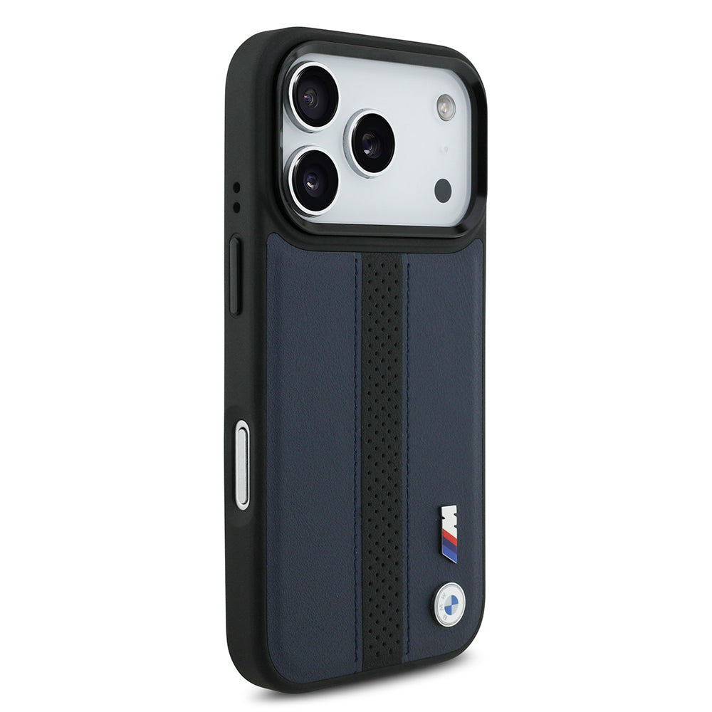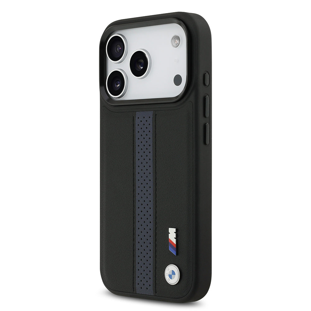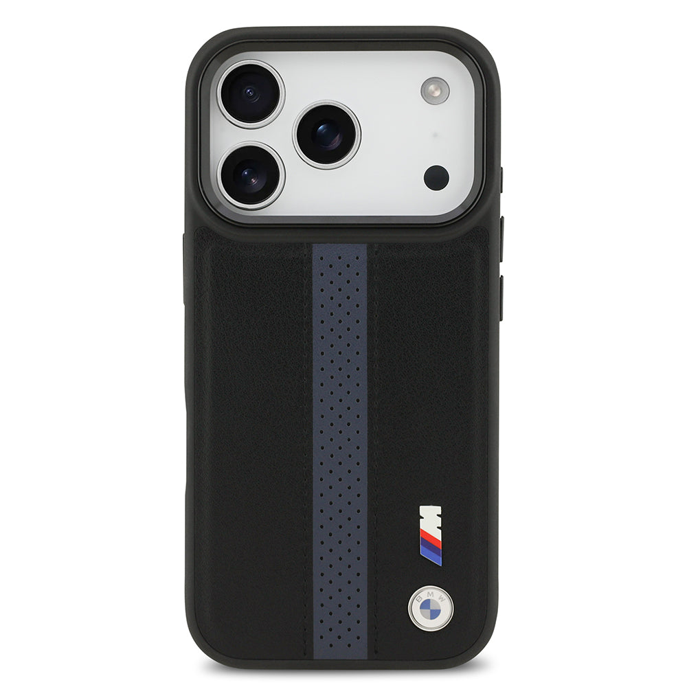 iPhone 17 Pro Kılıf BMW Orjinal Lisanslı M-safe Şarj Özellikli Deri Arka Yüzey Metal Logolu Delikli Şerit Tasarımlı Kılıf