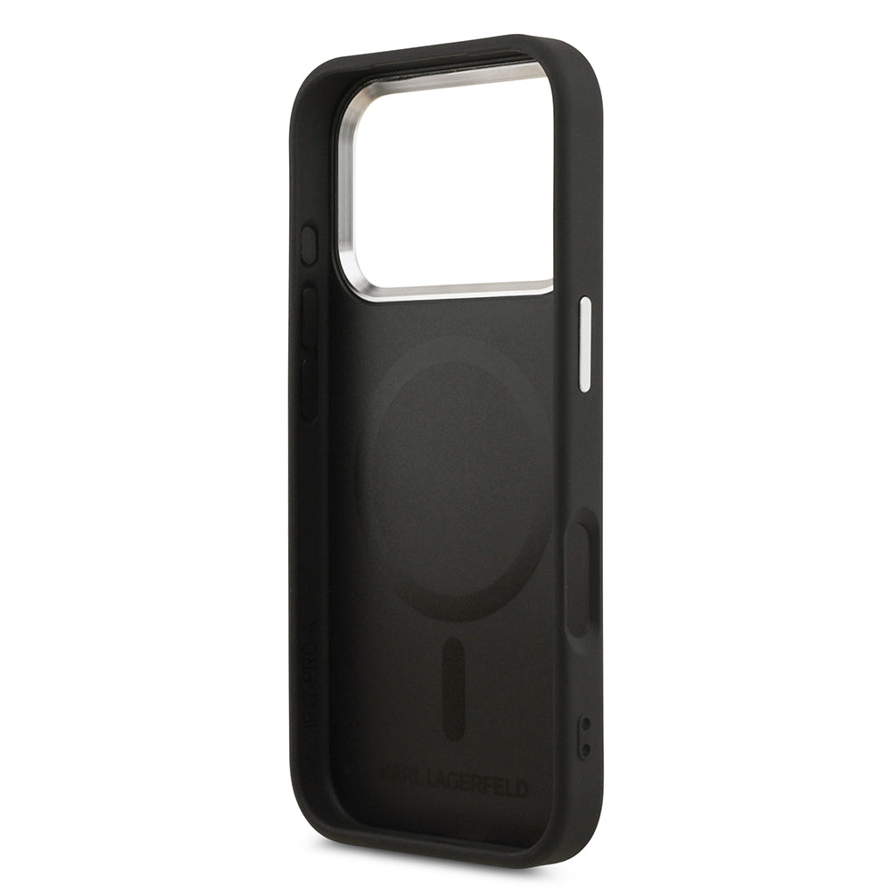iPhone 17 Pro Kılıf Karl Lagerfeld Orjinal Lisanslı M-safe Şarj Özellikli Delikli Tasarım Metal Logolu PU Deri Kapak