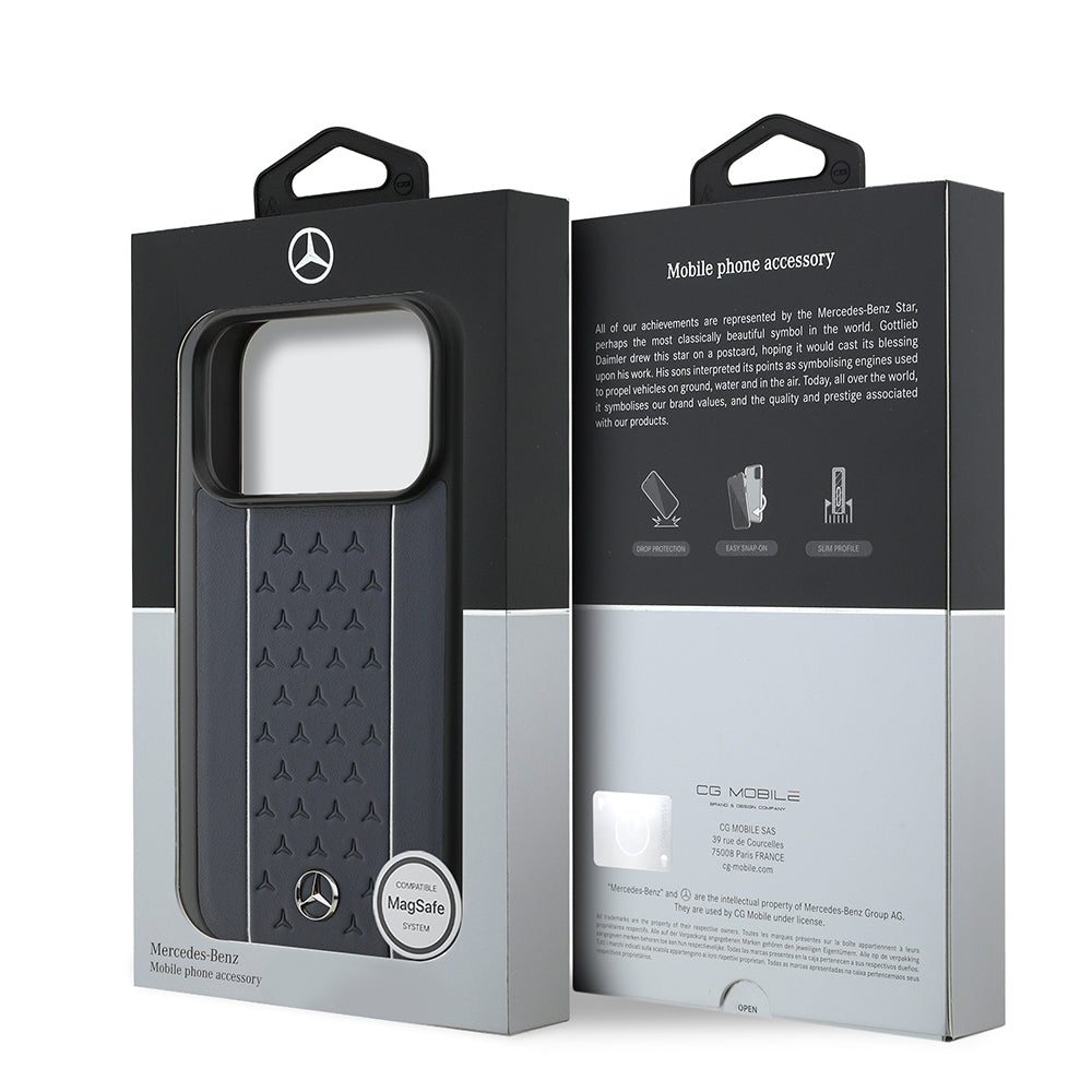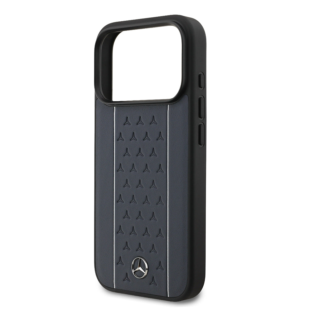 iPhone 17 Pro Kılıf Mercedes Benz Orjinal Lisanslı M-safe Şarj Özellikli Şeritli Yıldız Desenli Metal Logolu Deri Kılıf