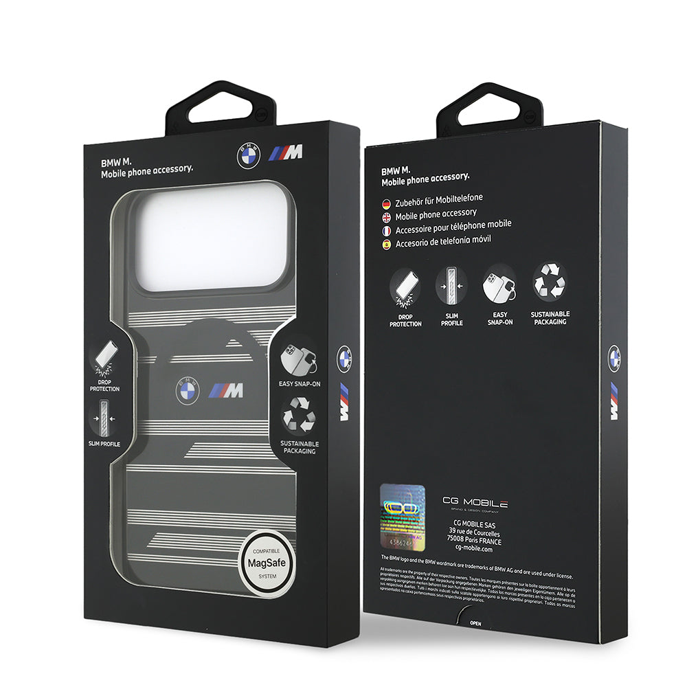 iPhone 17 Pro Max Kılıf BMW Orjinal Lisanslı M-safe Şarj Özellikli Metal Kamera Butonlu Yatay Şeritli M Dizayn Kılıf
