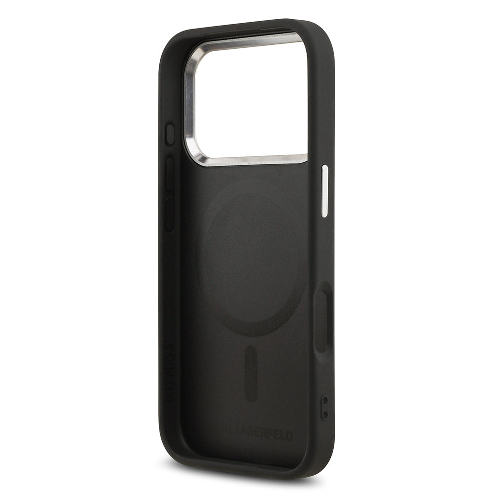 iPhone 17 Pro Max Kılıf Karl Lagerfeld Orjinal Lisanslı M-safe Şarj Özellikli Metal Kamera ve Buton Tasarımlı Karl PU Deri Kapak