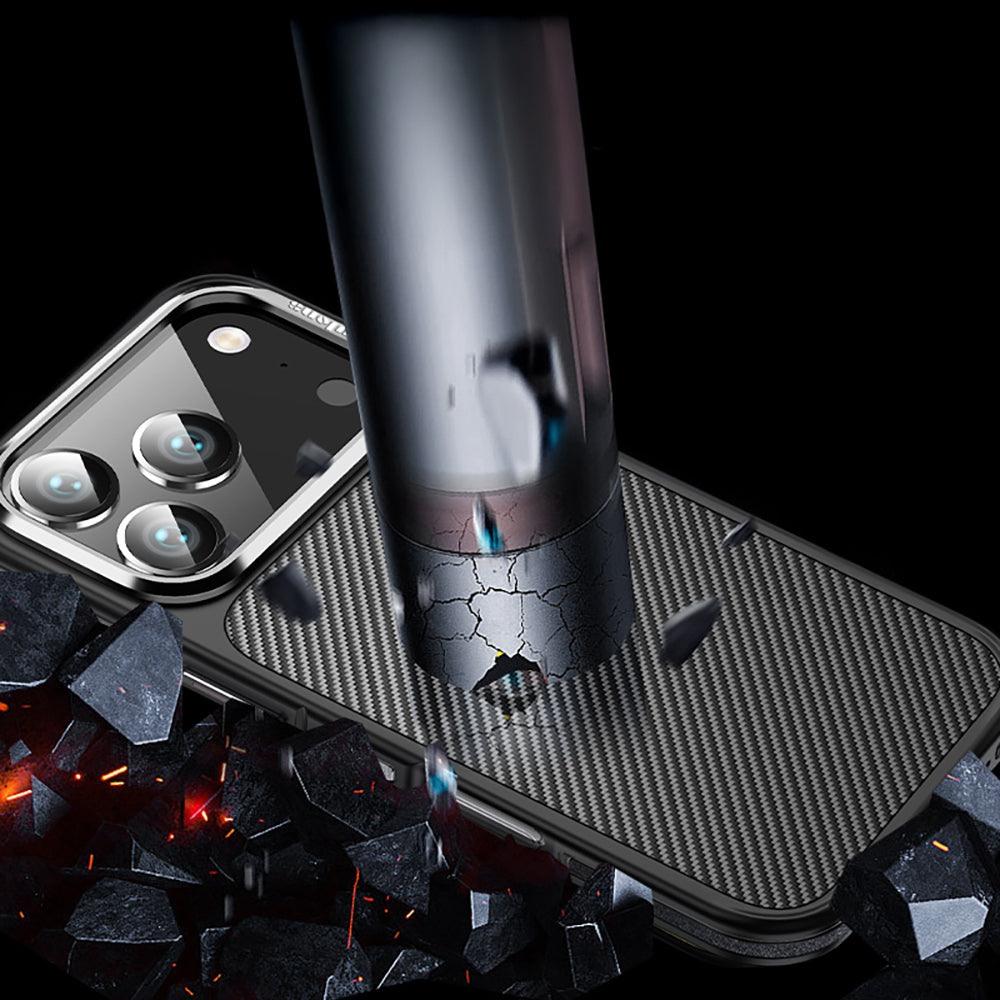 iPhone 17 Pro Max Kılıf Mat Transparan Karbon Fiber Görünümlü Wlons Marin Kılıf