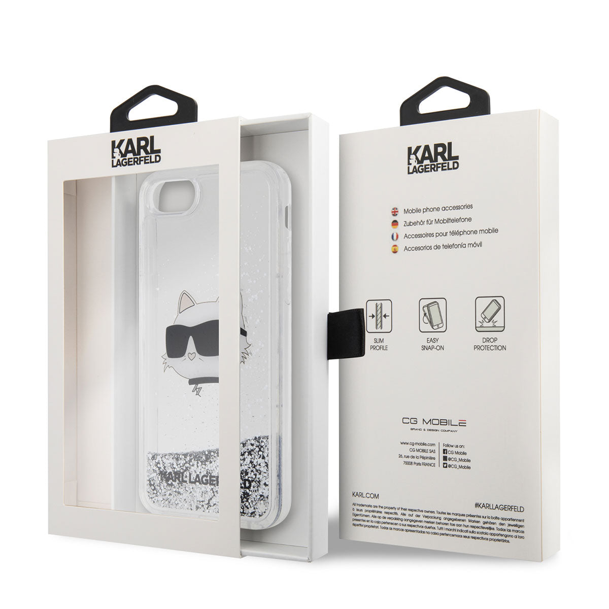 iPhone 7 Kılıf Karl Lagerfeld Sıvılı Simli Choupette Head Dizayn Kılıf