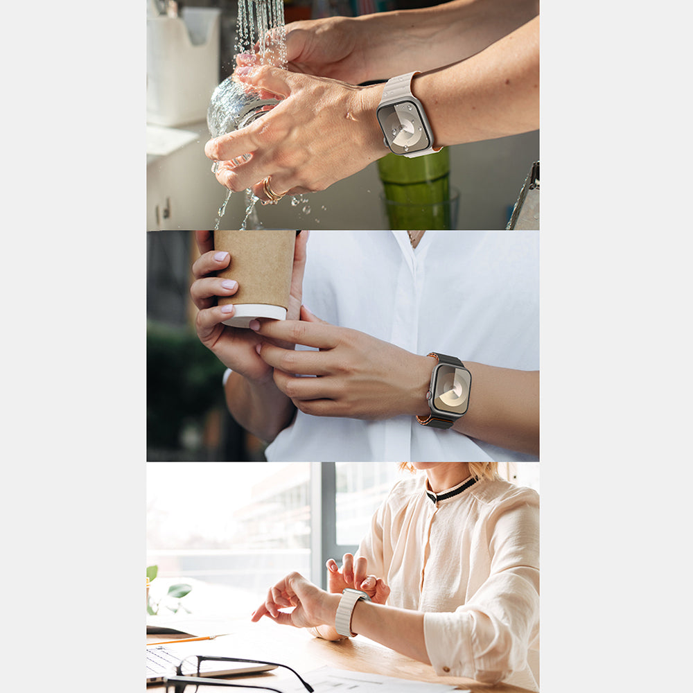 Bu kayış, iOS akıllı saat kullanıcılarının aradığı hem konforu hem de stil detaylarını bir arada sunuyor. Orijinal toka tasarımının birebir ölçülerde yeniden uygulanması sayesinde kolay ve güvenli kurulum sağlarken, manyetik yapısı her kullanımda bileğinize kendini otomatik olarak sabitler. Günlük kullanımda pratikliğiyle öne çıkan bu kayış, spor yaparken, çalışırken ya da arkadaşlarınızla vakit geçirirken yanınızdan ayırmak istemeyeceğiniz bir tamamlayıcı haline gelir.