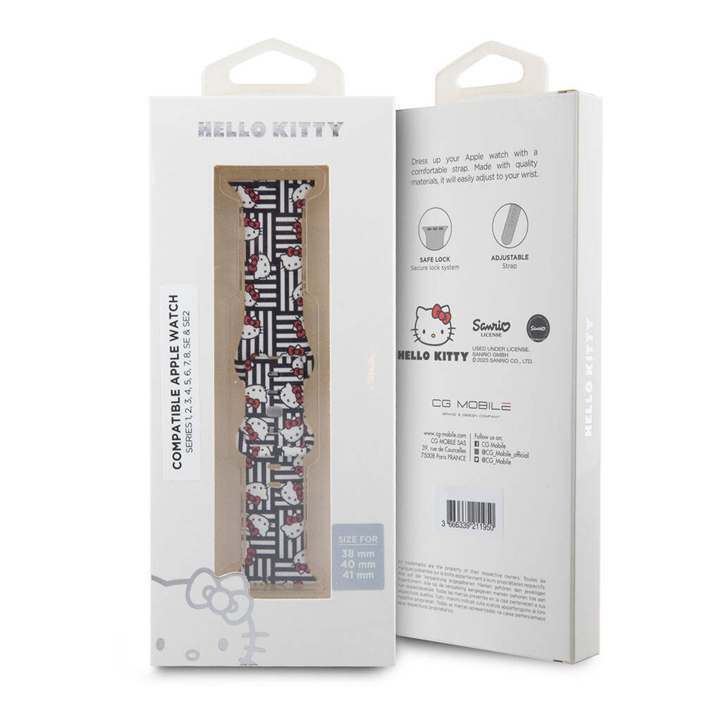 Apple Watch 38mm Hello Kitty Orjinal Lisanslı Çizgiler & Kitty Silikon Kordon