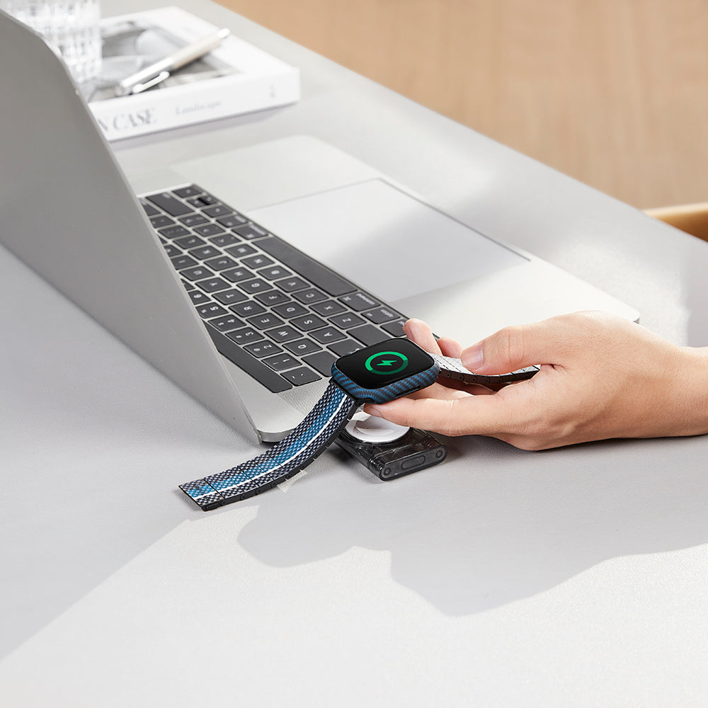 Pitaka Air Case, Watch 7 45mm’nin orijinal kayışlarıyla sorunsuz bir şekilde uyum sağlar. Düğmelere ve tüm işlevlere tam erişim sunan hassas kesimler, saatinizin estetik yapısını bozmadan mükemmel bir uyum sunar. Ayrıca, ergonomik tasarımı sayesinde saatinizi kablosuz şarj etmeniz için kılıfı çıkarmanıza gerek kalmaz, bu da kullanım kolaylığı sağlar.