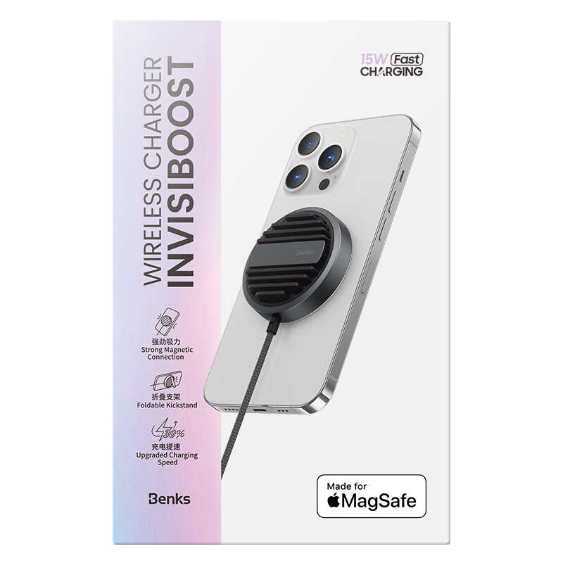 Benks MFM01 MFI Sertifikalı Standlı 15W Hızlı Şarj Özellikli Magsafe PD Wireless Şarj Aleti