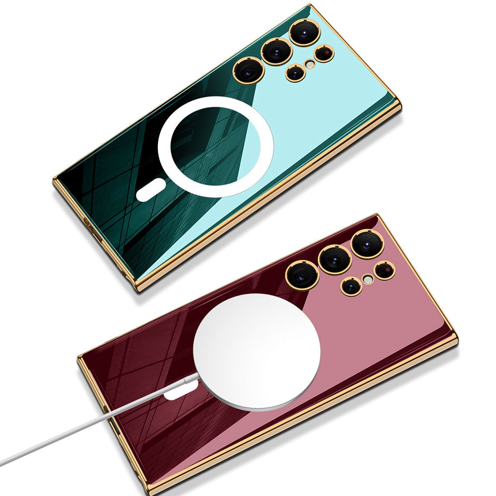 Galaxy S23 Ultra Kılıf Wireless Şarj Özellikli Kenarları Elektroplating Kaplama Aynalı Zore Kent Kılıf