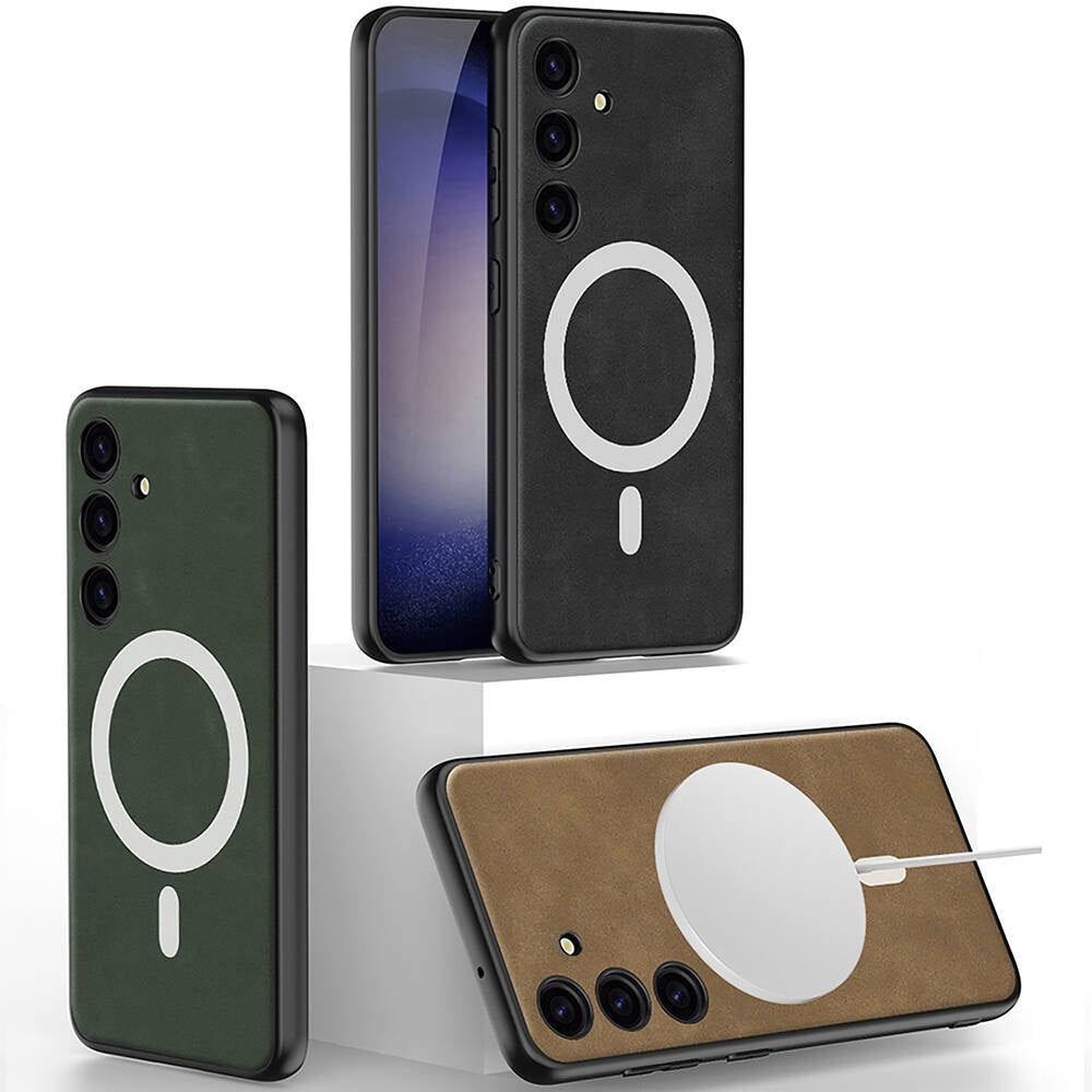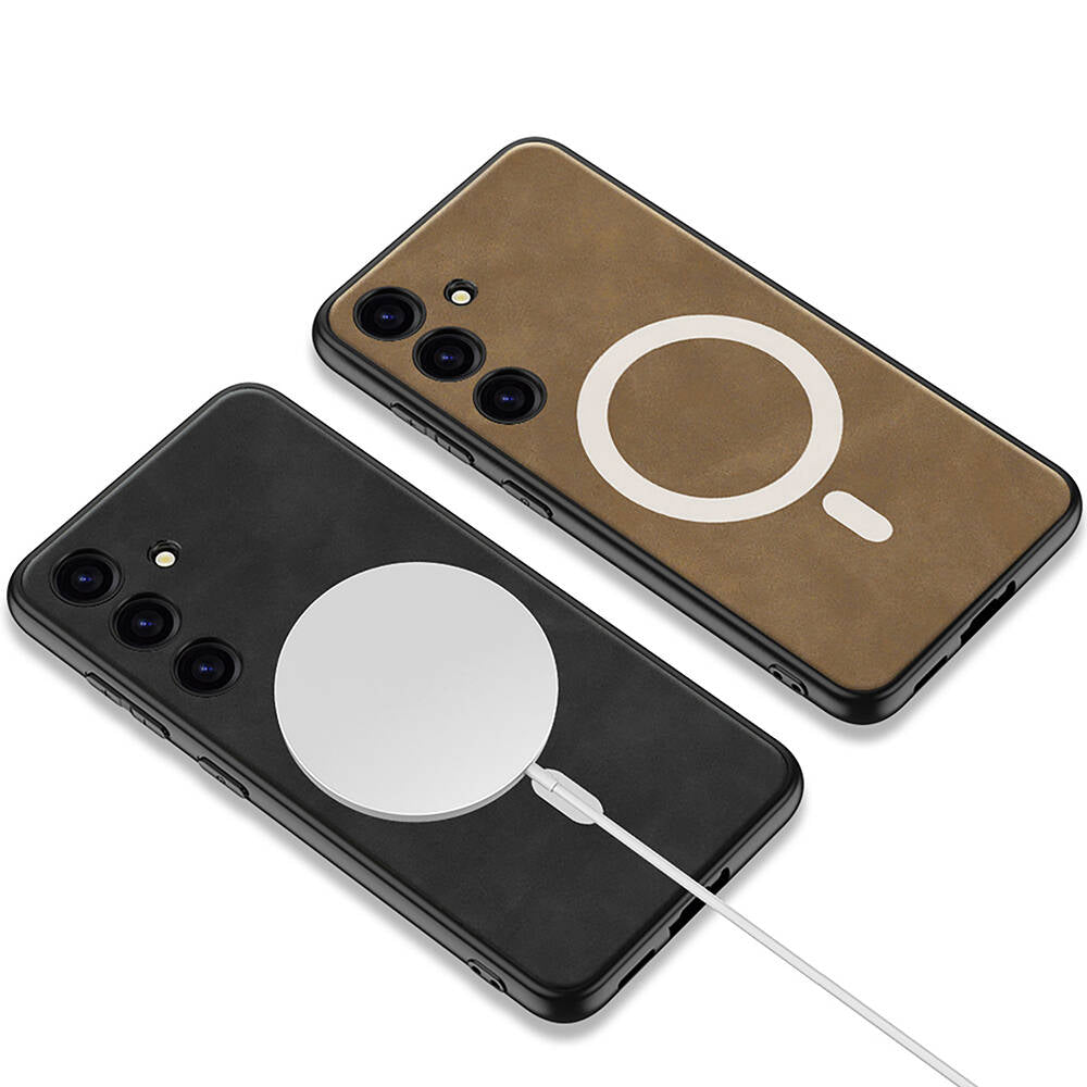 Galaxy S24 Kılıf M-safe Şarj Özellikli Deri Tasarımlı Zore Kıpta Nubuk Kılıf