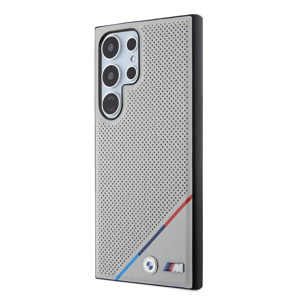 Galaxy S24 Ultra Kılıf BMW Orjinal Lisanslı M-safe Şarj Özellikli M Logolu Üç Çizgili Delikli Deri Kılıf