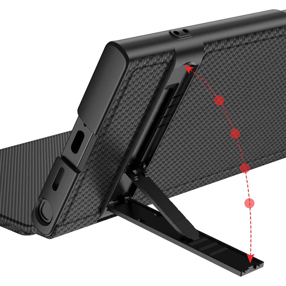 Galaxy S24 Ultra Kılıf Kamera Korumalı Karbon Tasarım Zore Droga Standlı Kartlıklı Kılıf