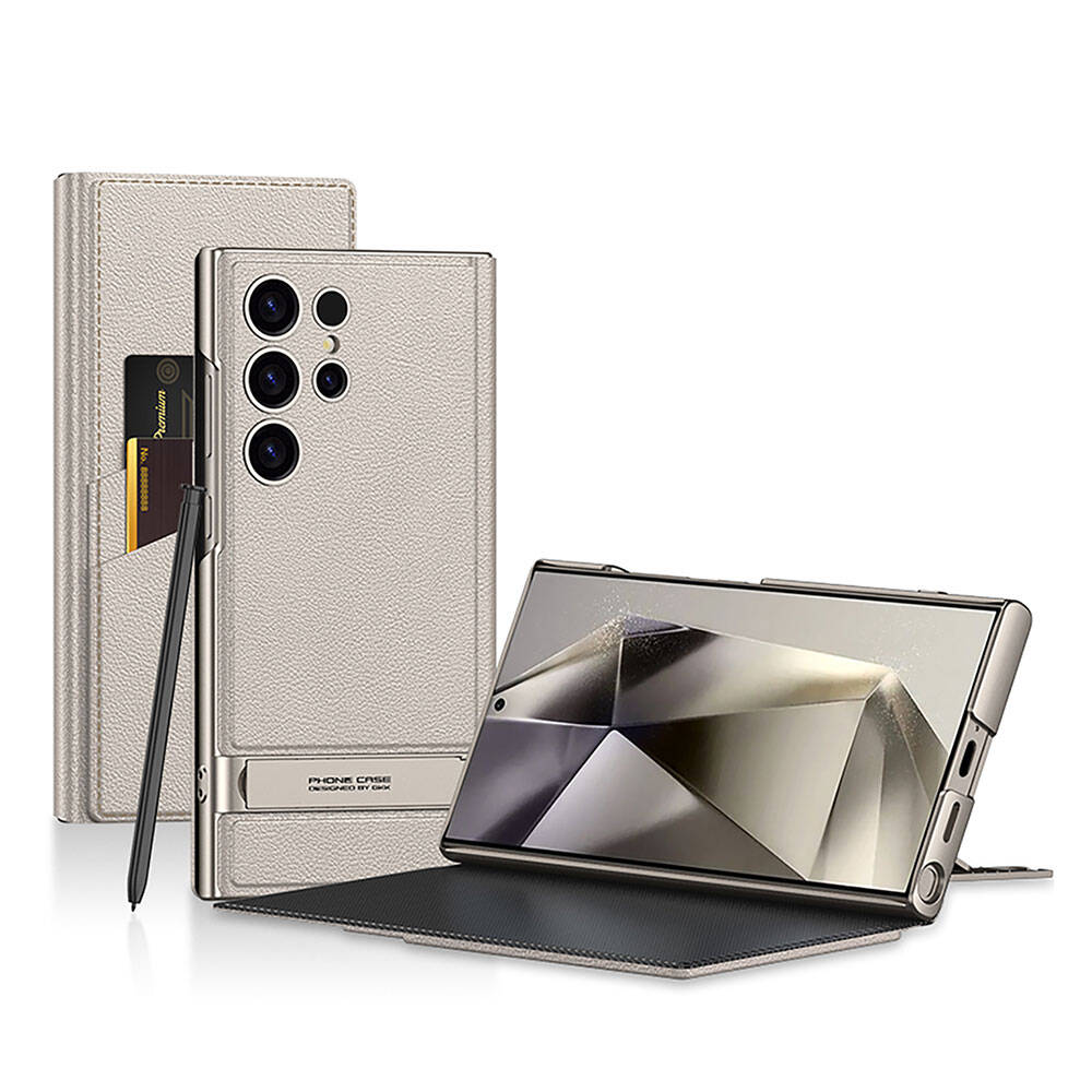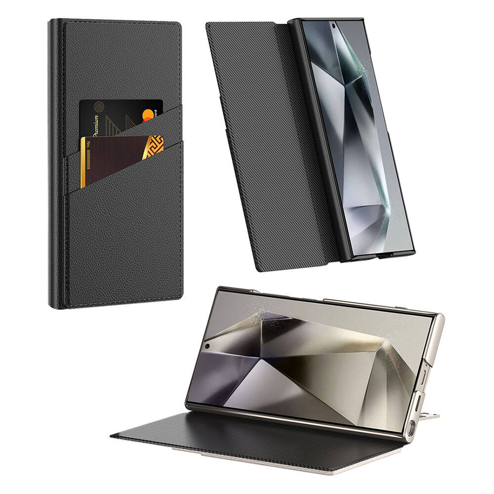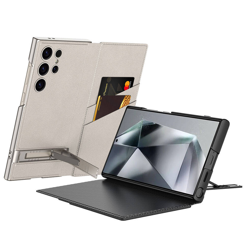 Galaxy S24 Ultra Kılıf Kamera Korumalı Suni Deri Tasarım Zore Droga Standlı Kartlıklı Kapaklı Kılıf