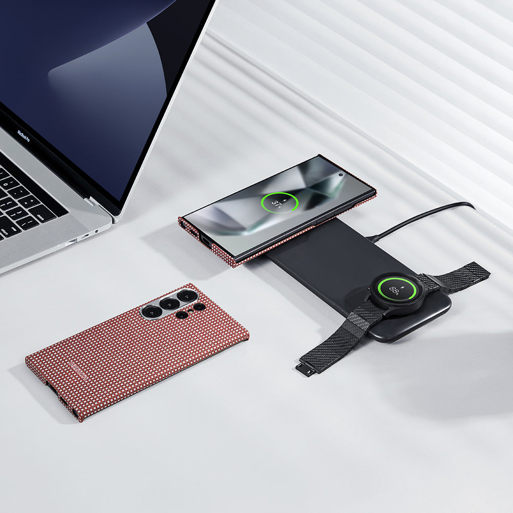 Galaxy S24 Ultra Kılıf M-safe Şarj Özellikli 1500D Aramid Fiber Pitaka Ultra-Slim Classic Serisi Bonfire Kılıf