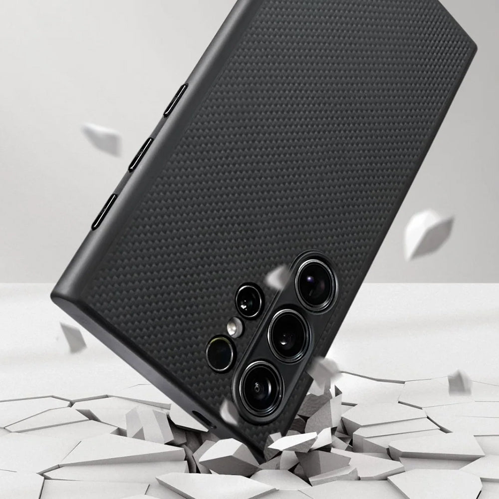 Galaxy S24 Ultra Kılıf M-safe Şarj Özellikli Aramid Fiber 3 Fonksiyon Butonlu Pitaka PinButton Serisi Kılıf