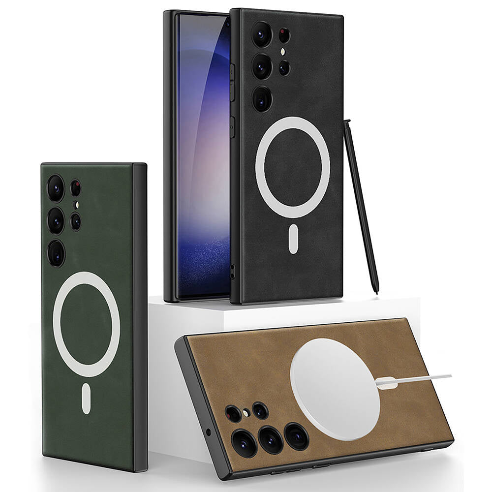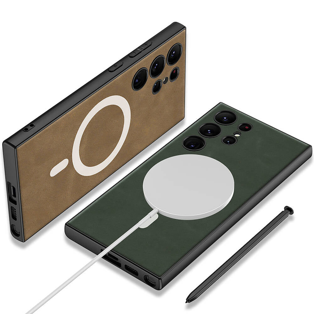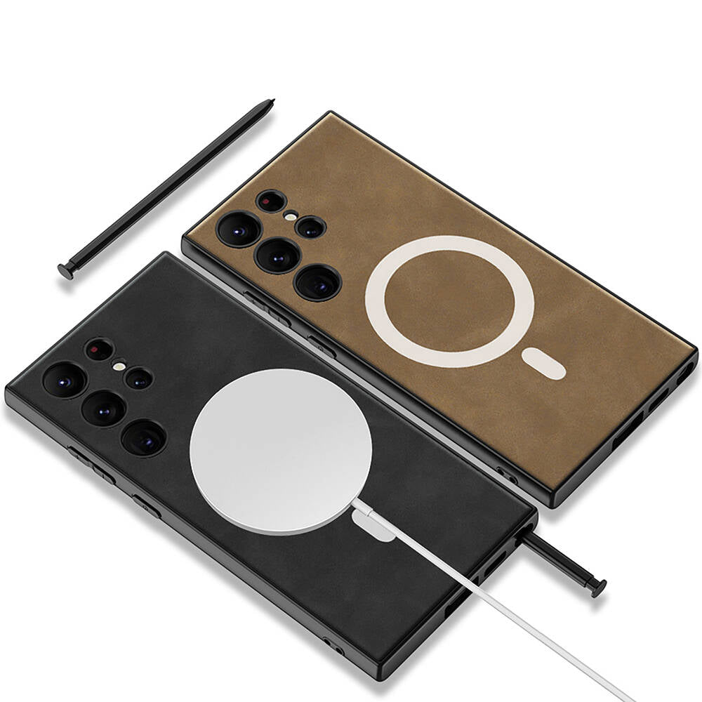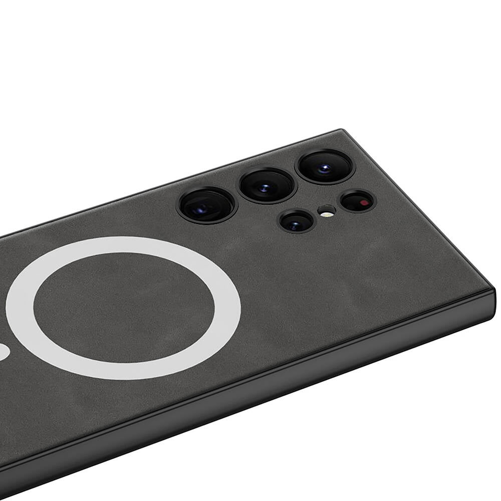 Galaxy S24 Ultra Kılıf M-safe Şarj Özellikli Deri Tasarımlı Zore Kıpta Nubuk Kılıf