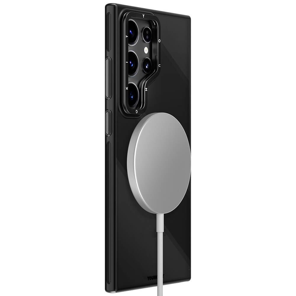 Galaxy S24 Ultra Kılıf M-safe Şarj Özellikli Sararma Önleyici Youngkit Crystal Grid Kılıf