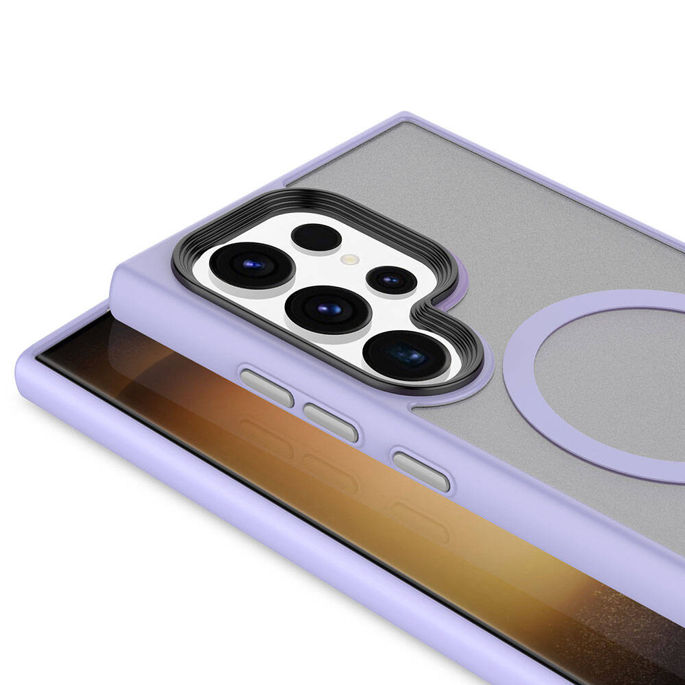 Galaxy S24 Ultra Kılıf Sert PC Arka Yüzey Wireless Şarj Özellikli Zore Flet M-safe Kılıf