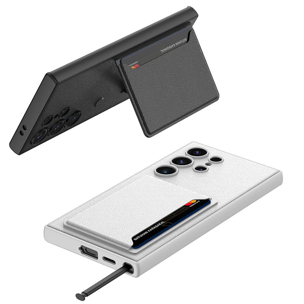 Galaxy S24 Ultra Suni Deri Arka Yüzey Zore Kartlıklı Kıpta Silikon Kılıf