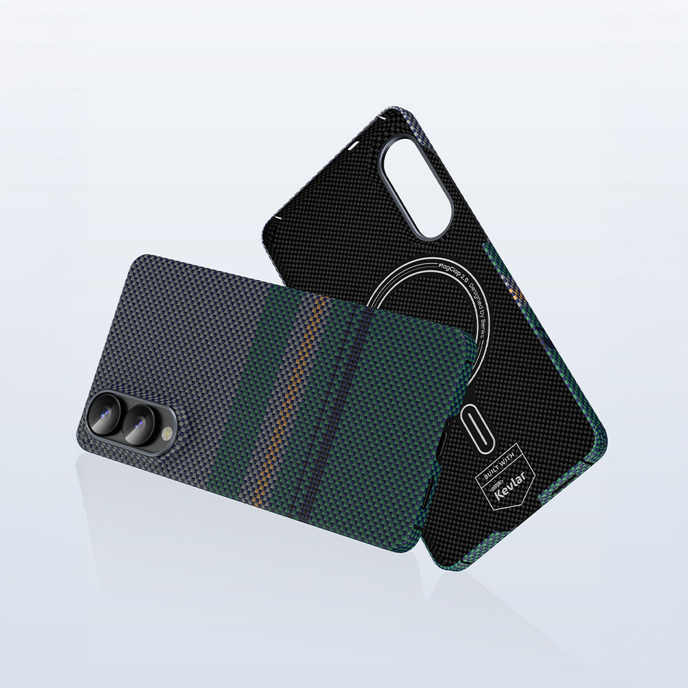 Galaxy S25 Edge Kılıf M-safe Şarj Özellikli Karbon Fiber Tasarımlı Benks Aurora ArmorAir Kevlar Kılıf