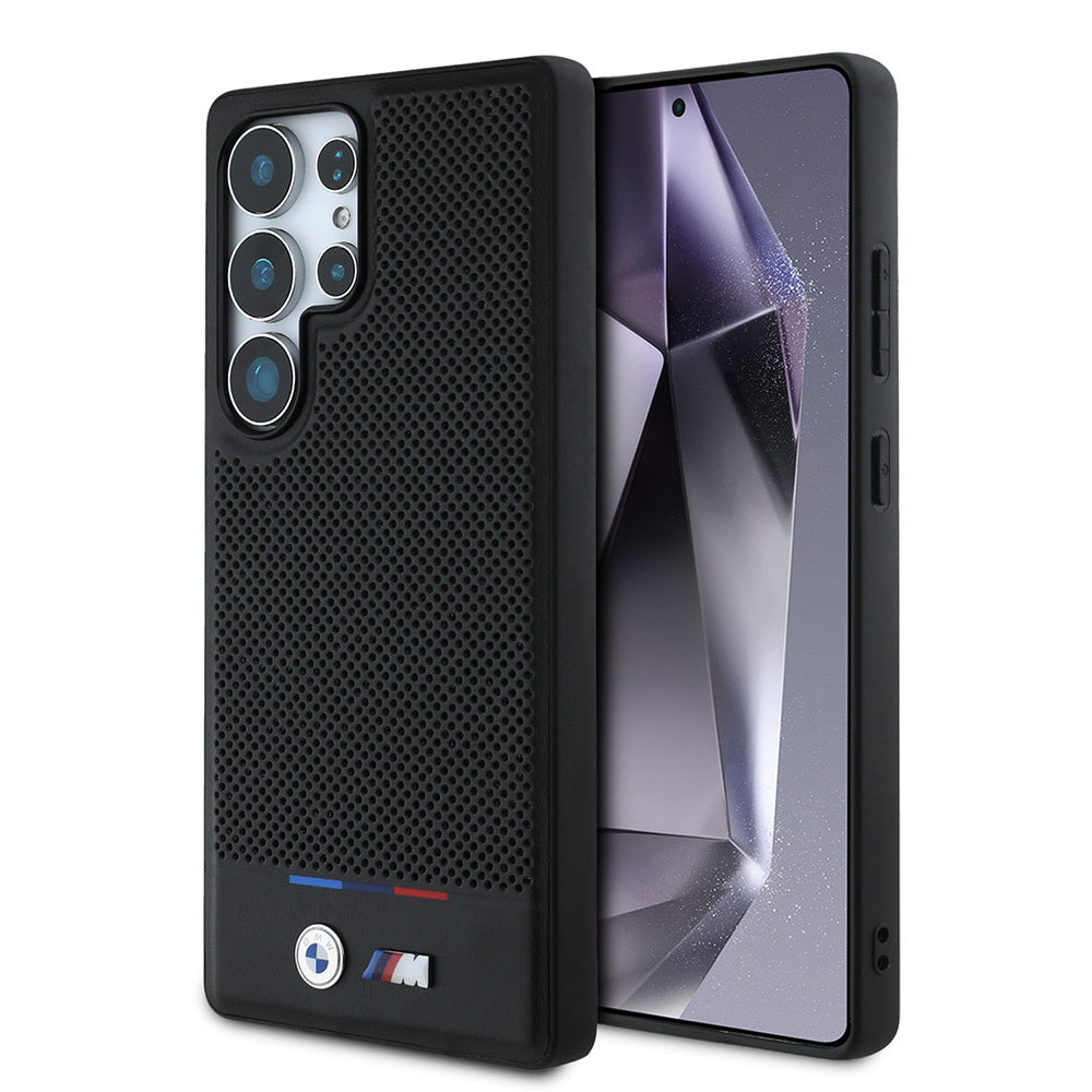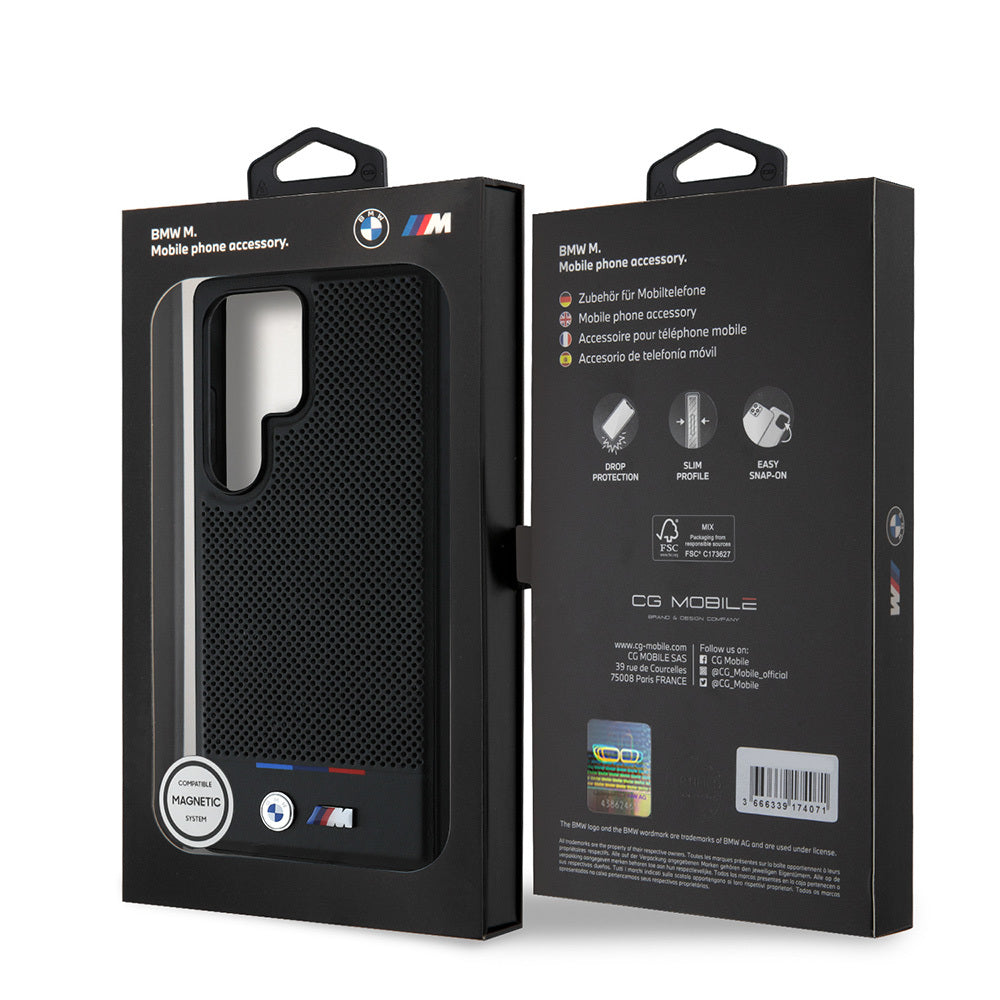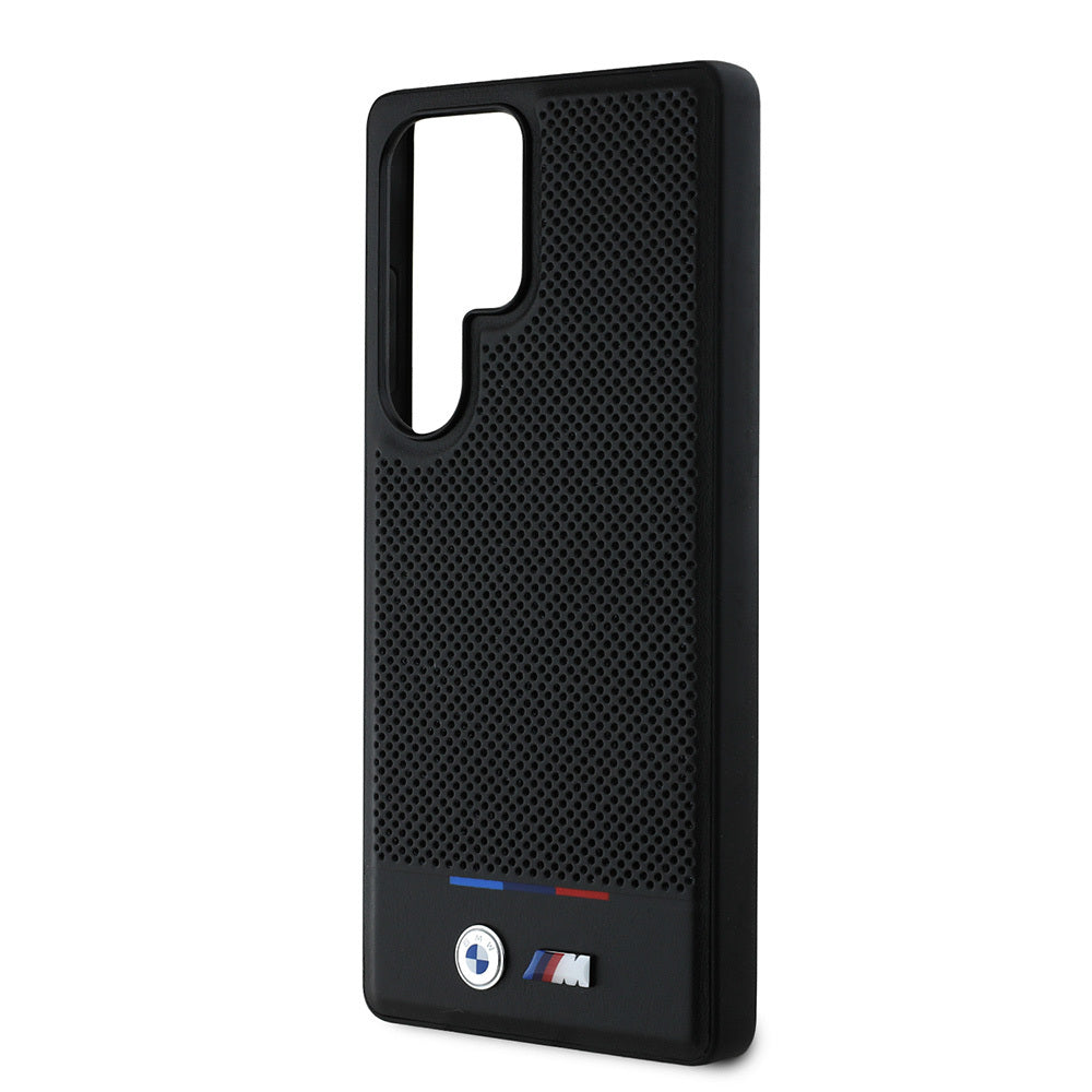 Galaxy S25 Ultra Kılıf BMW Orjinal Lisanslı Magsafe Şarj Özellikli M Logolu Bottom Üç Çizgili Delikli PU Deri Kapak